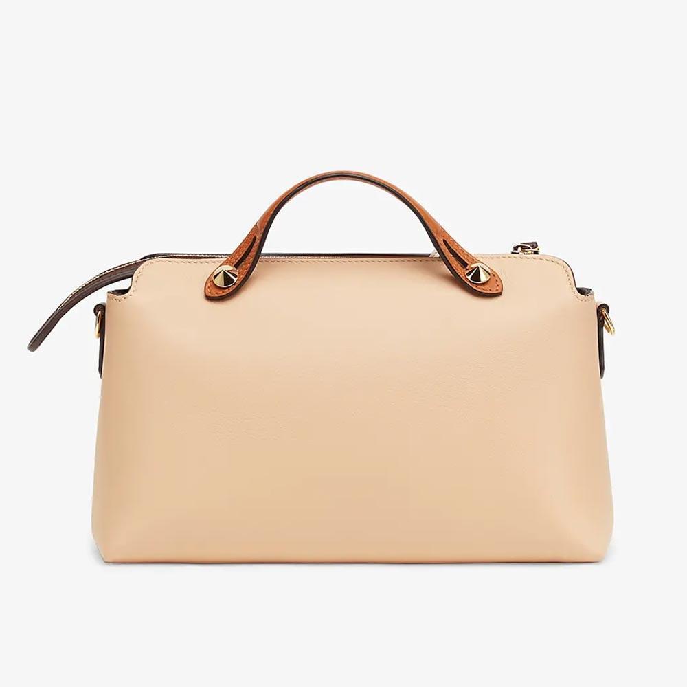 Iconic medium By The Way Fendi Roma Boston bag, made of beige leather with a zip fastening.