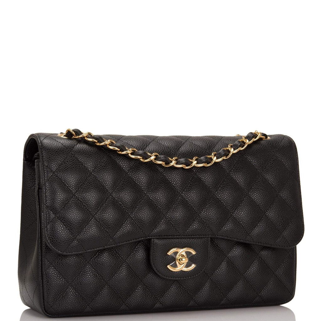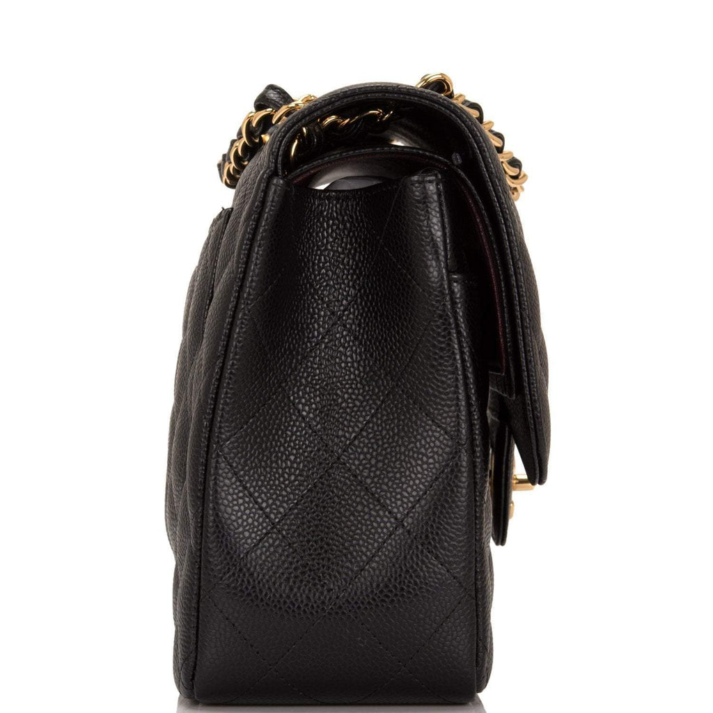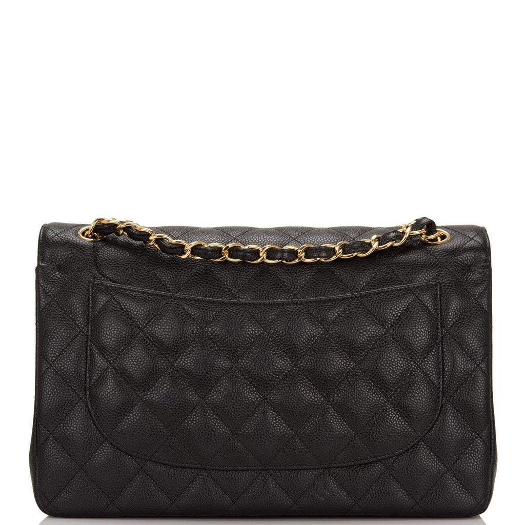- Chanel Black Quilted Caviar Jumbo Classic Double Flap Bag Gold Hardware
