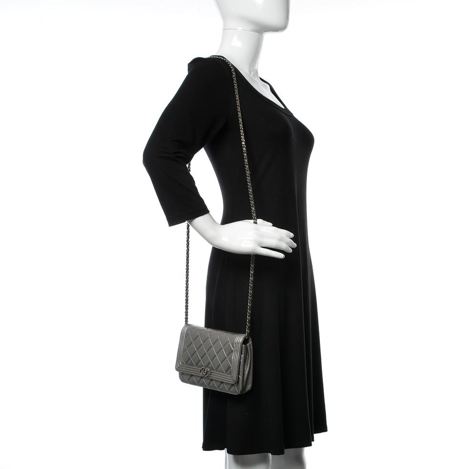 - Chanel Boy Wallet on Chain Metallic Calfskin Quilted Woc Silver Leather Shoulder Bag