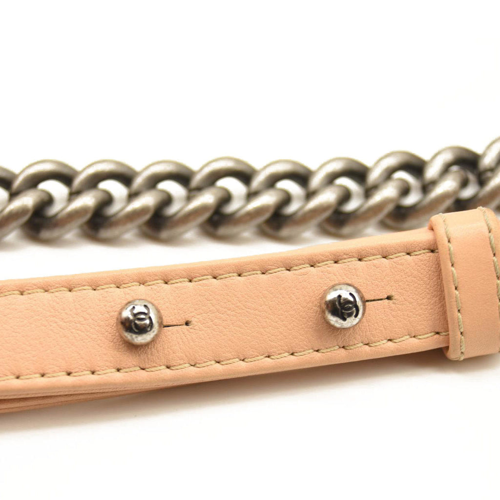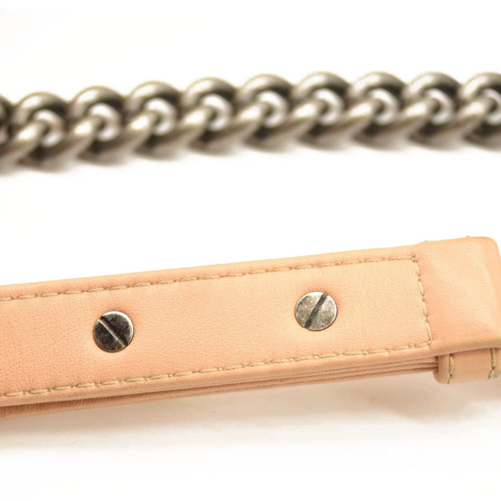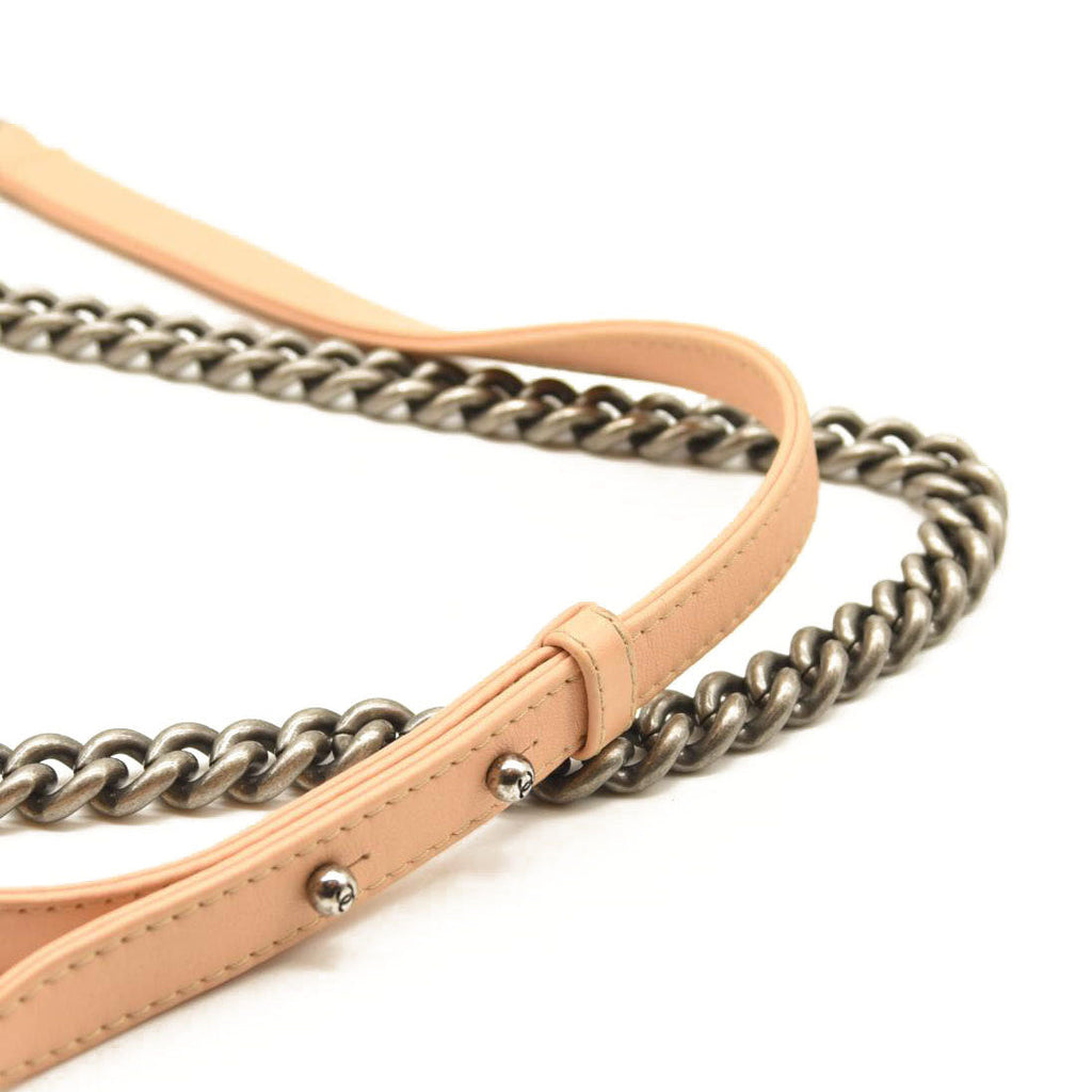 This is an authentic CHANEL Calfskin Braided Chevron Medium Boy Flap in Beige. This chic shoulder bag features stitched chevron calfskin leather in beige with a frame of linear quilting with braided accents. The bag features an aged silver chain link and shoulder pad shoulder strap with an aged silver facing Chanel CC push lock on the full facing flap. The flap opens to a matching fabric interior with a patch pocket.