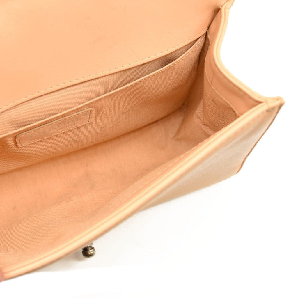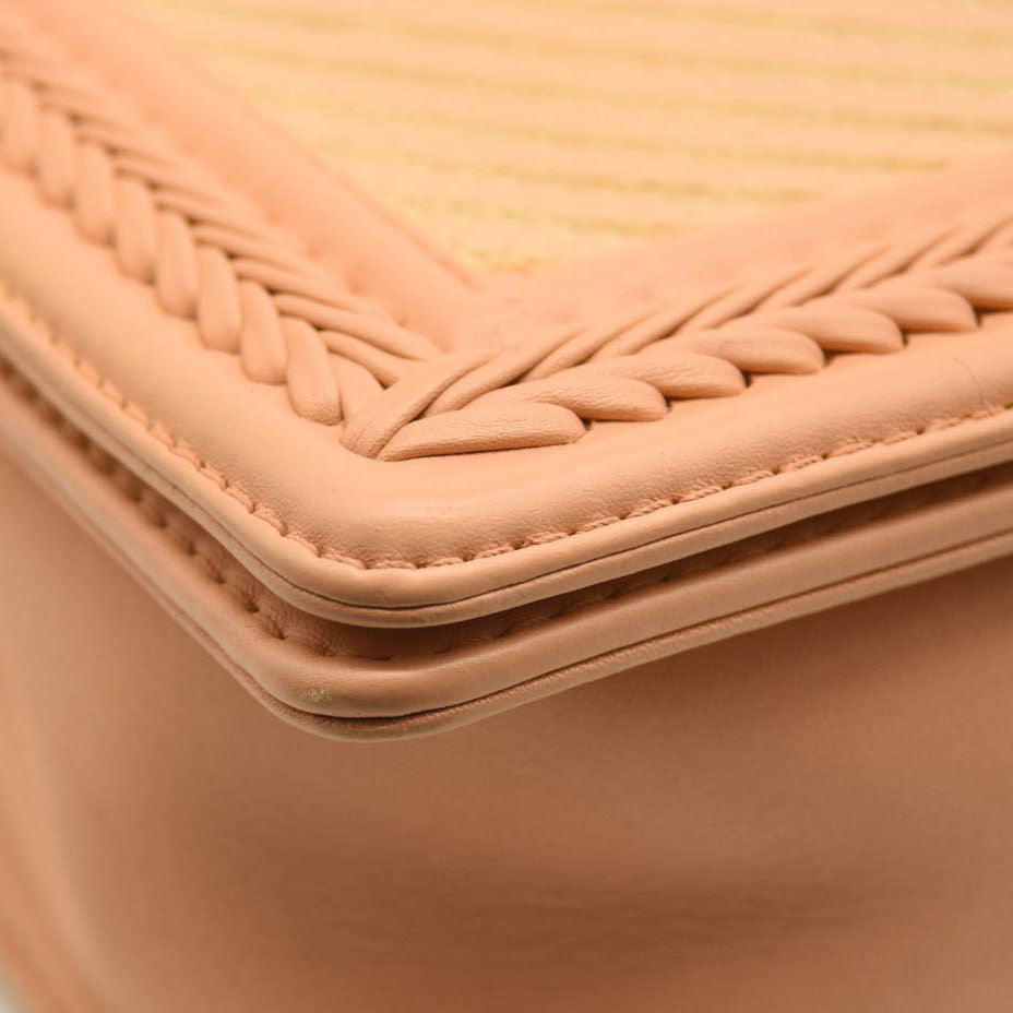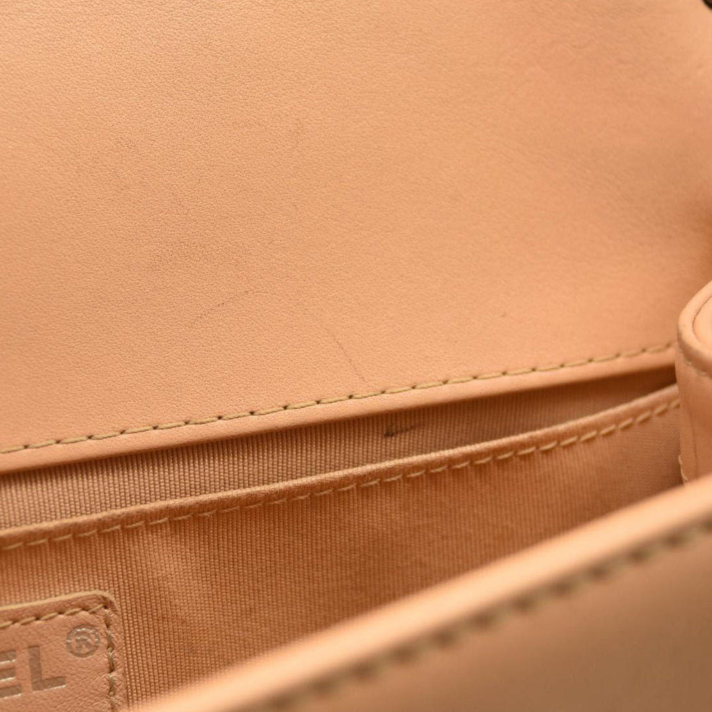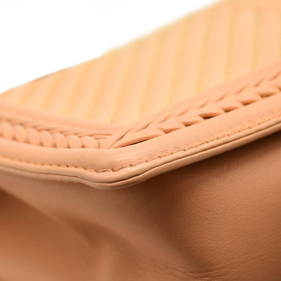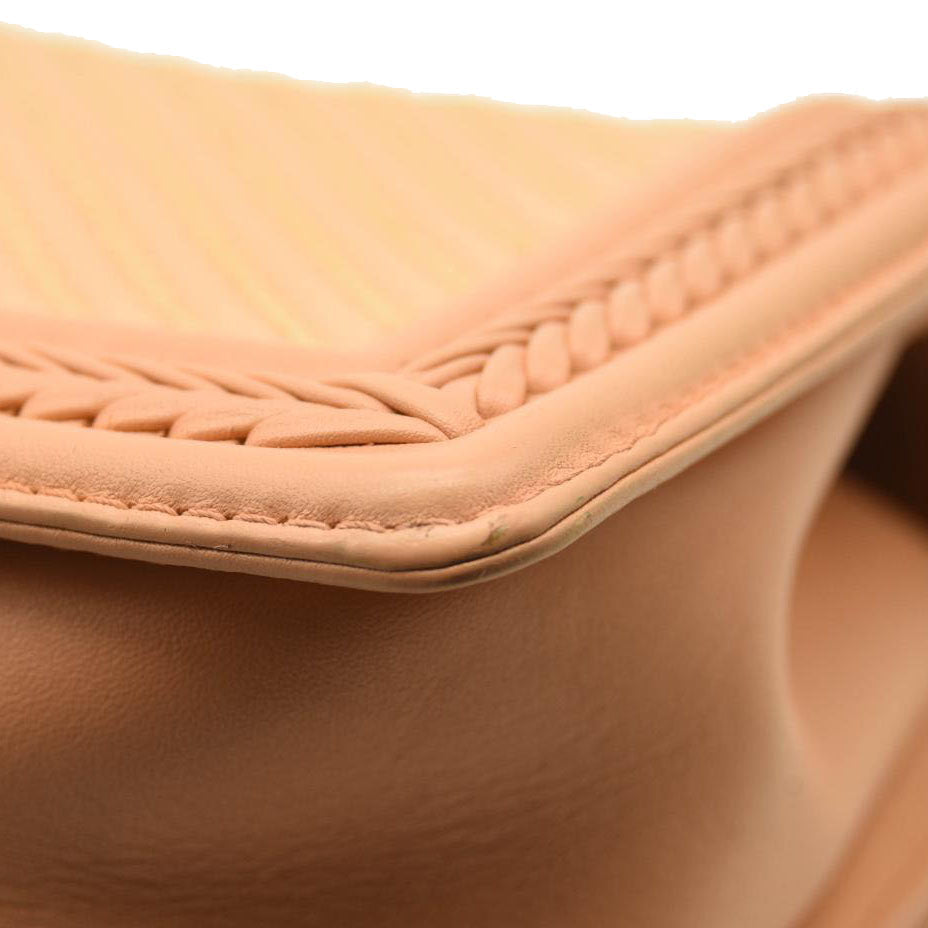 CHANEL Calfskin Chevron Quilted Medium Braided Boy Flap Beige