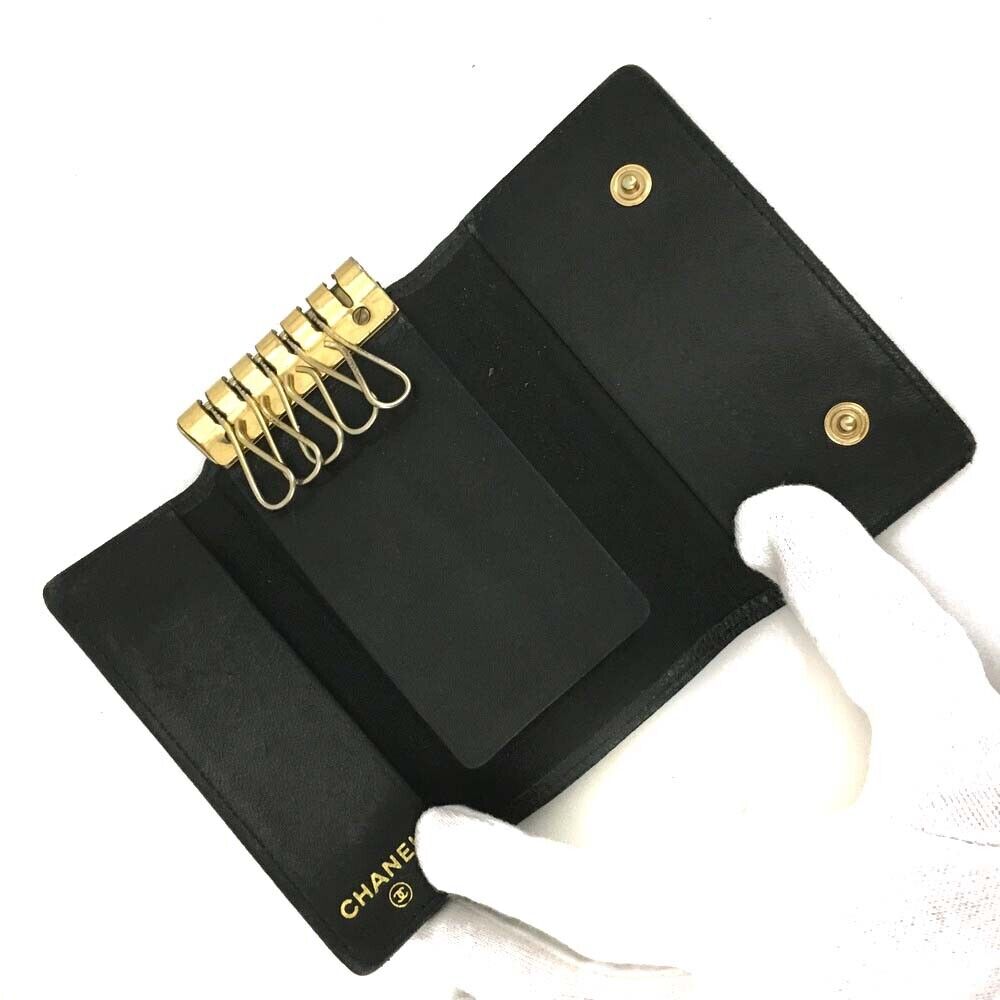 - CHANEL Caviar Timeless CC 6 Key Holder Case Black