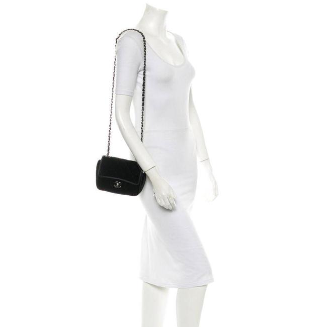 DESCRIPTION We guarantee this is an authentic CHANEL Velvet Quilted Mini Square Flap Black or 100% of your money back. This elegant bag is crafted of black velvet. It features a long fabric treaded light...