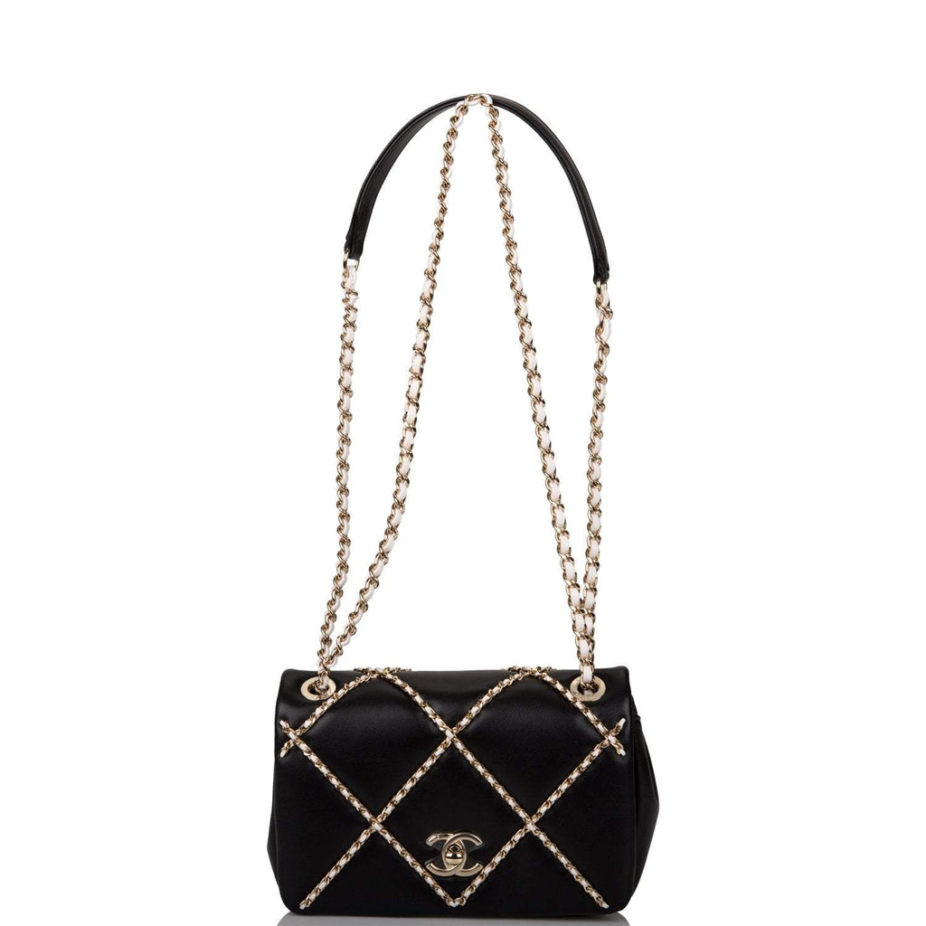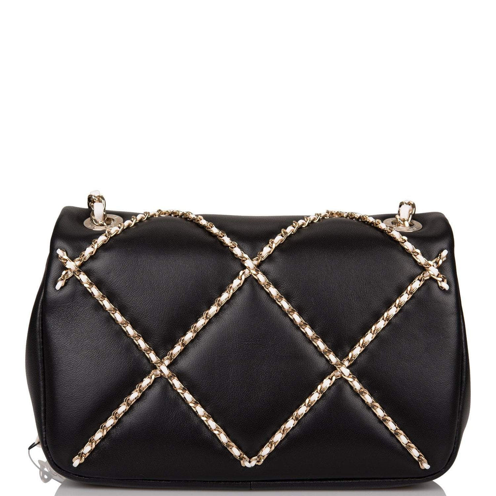 - Chanel Entwined Chain Small Flap Bag Black Lambskin Light Gold Hardware