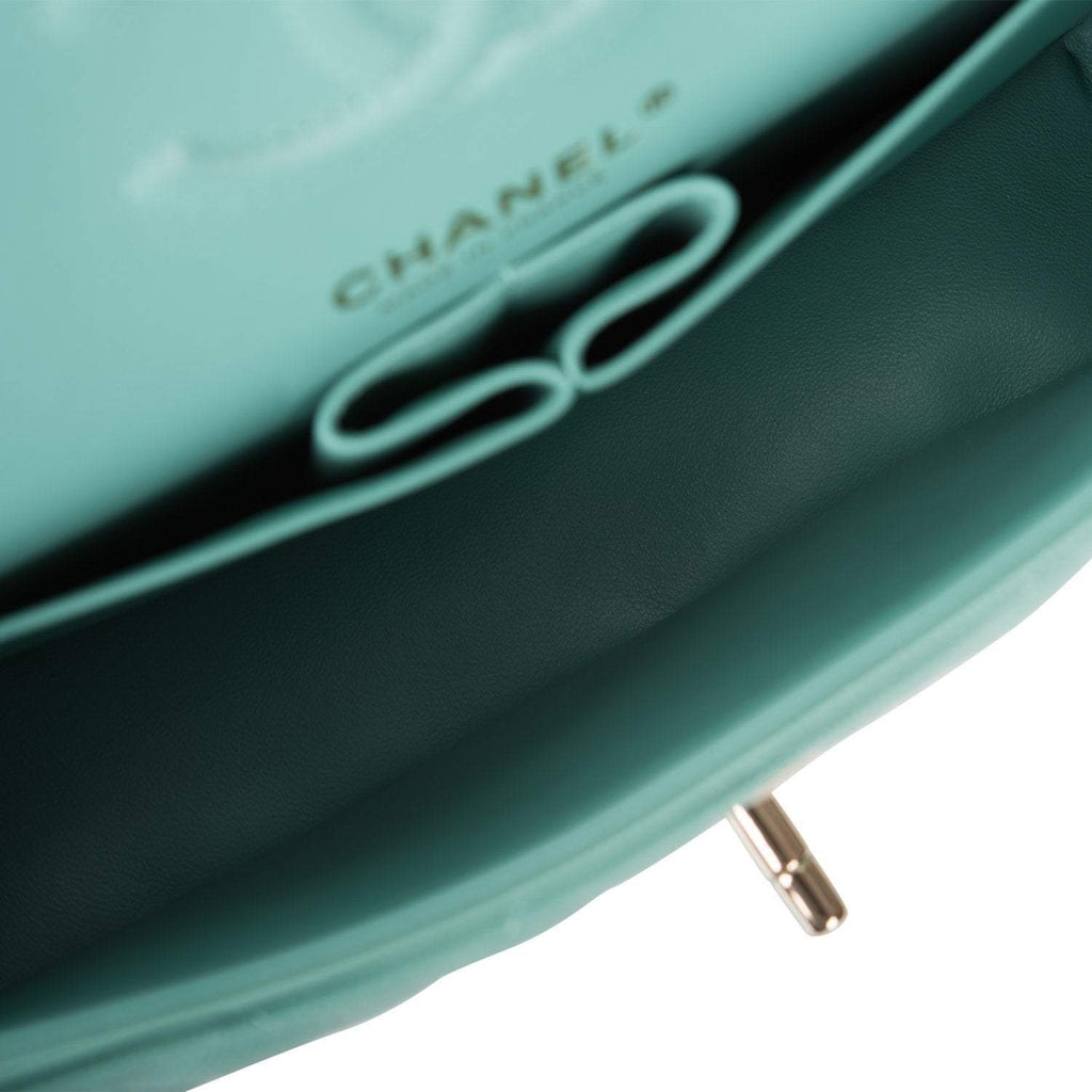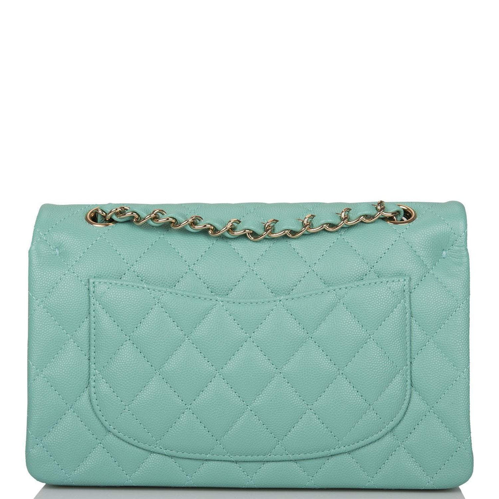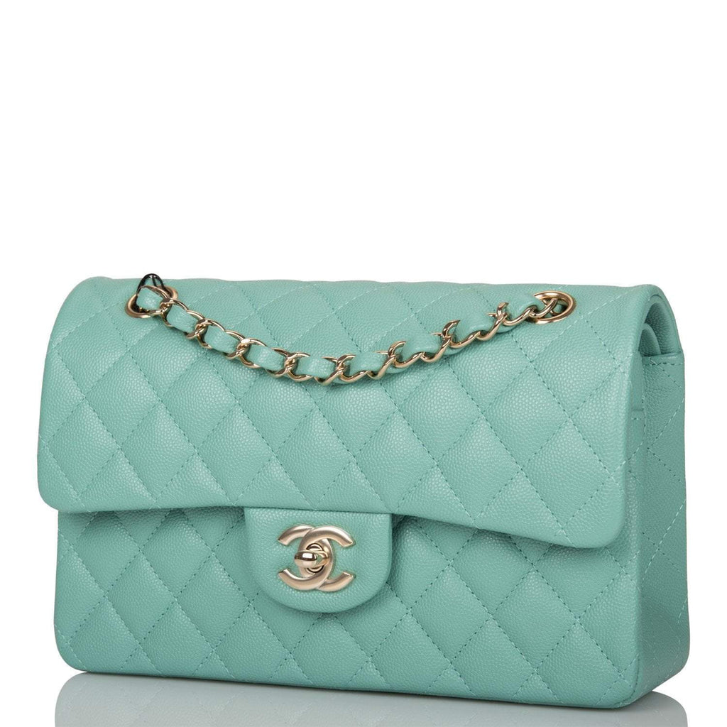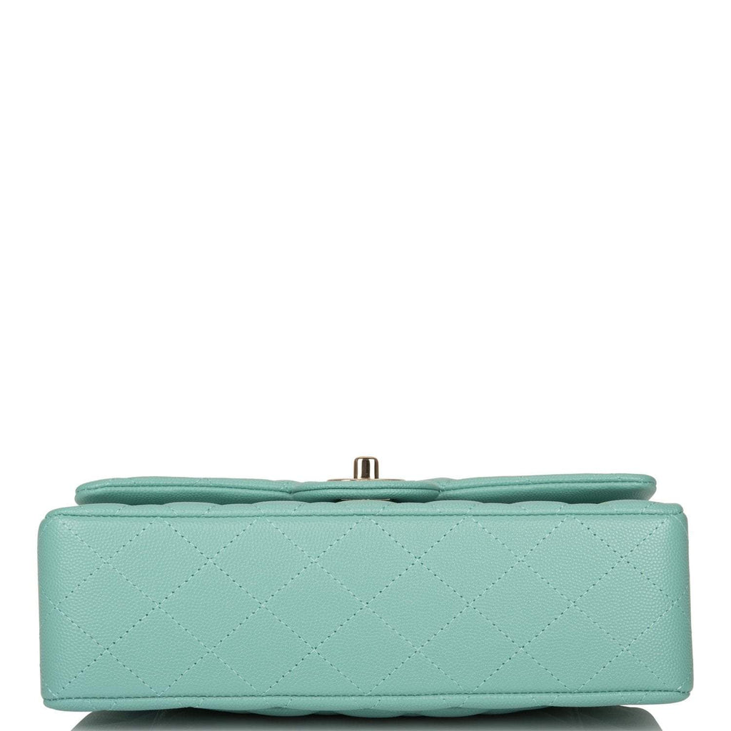 - Chanel Light Green Quilted Caviar Small Classic Double Flap Bag Light Gold Hardware