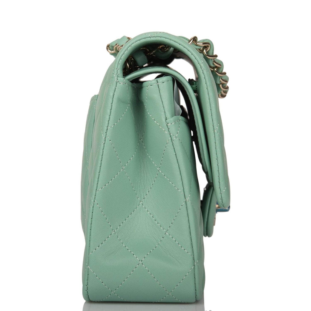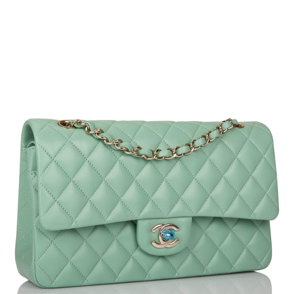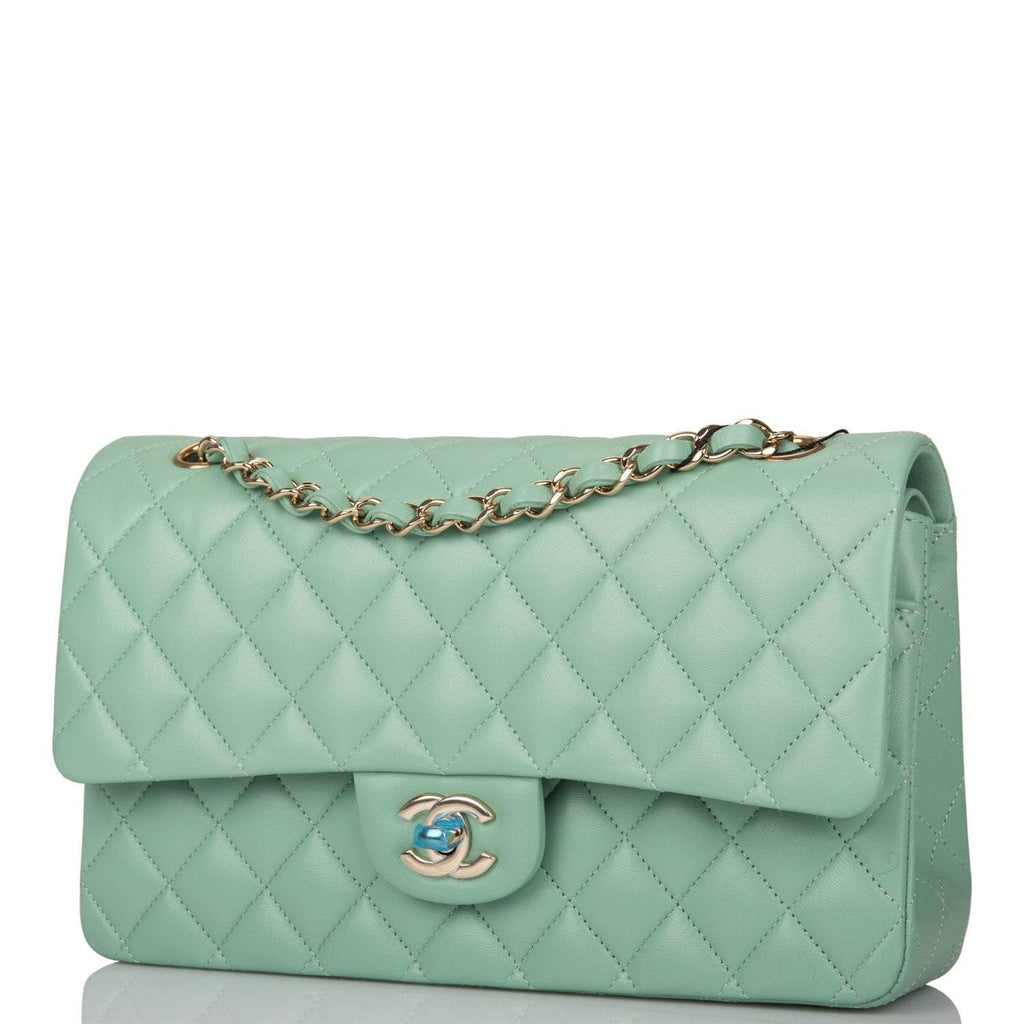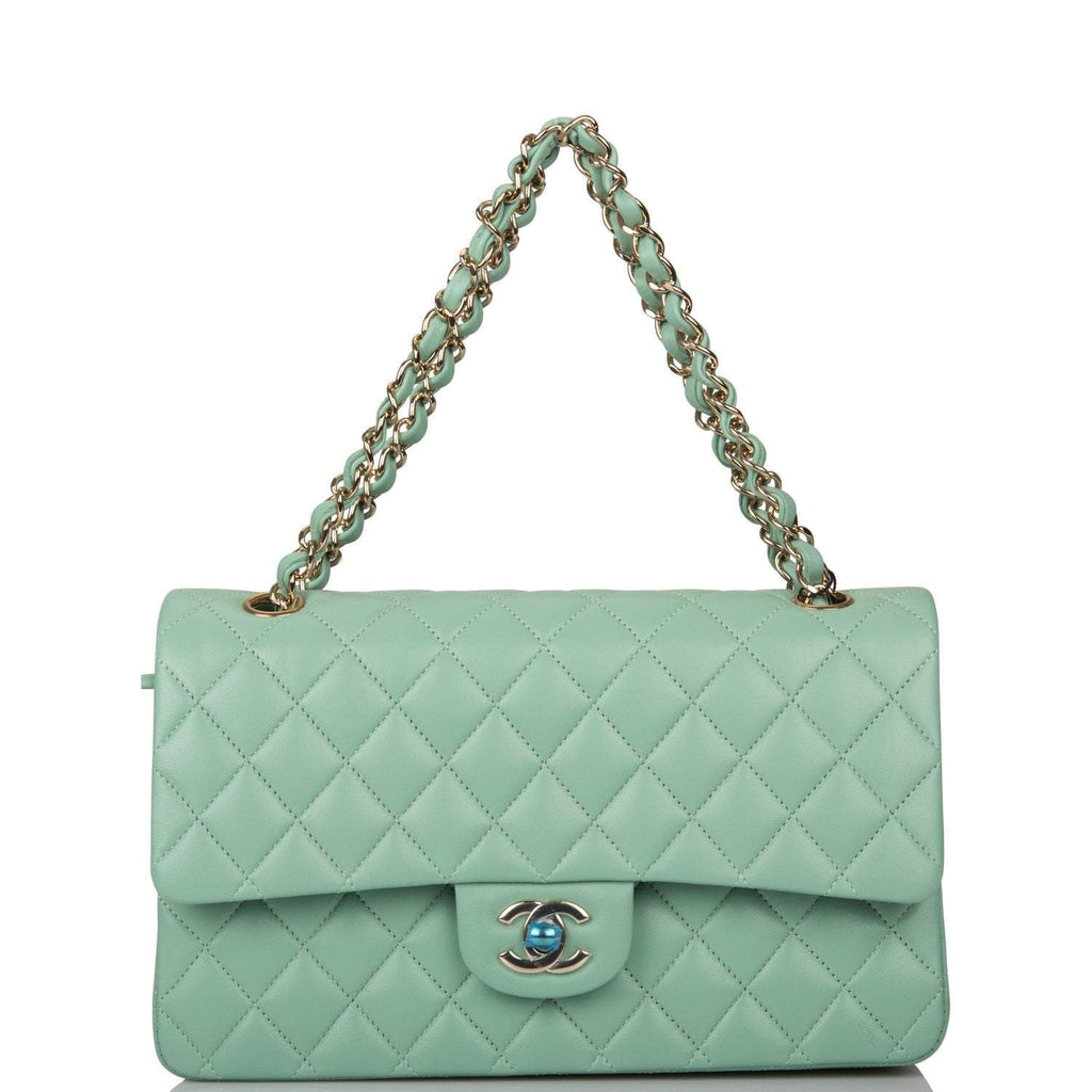 - Chanel Light Green Quilted Lambskin Medium Classic Double Flap Bag Light Gold Hardware
