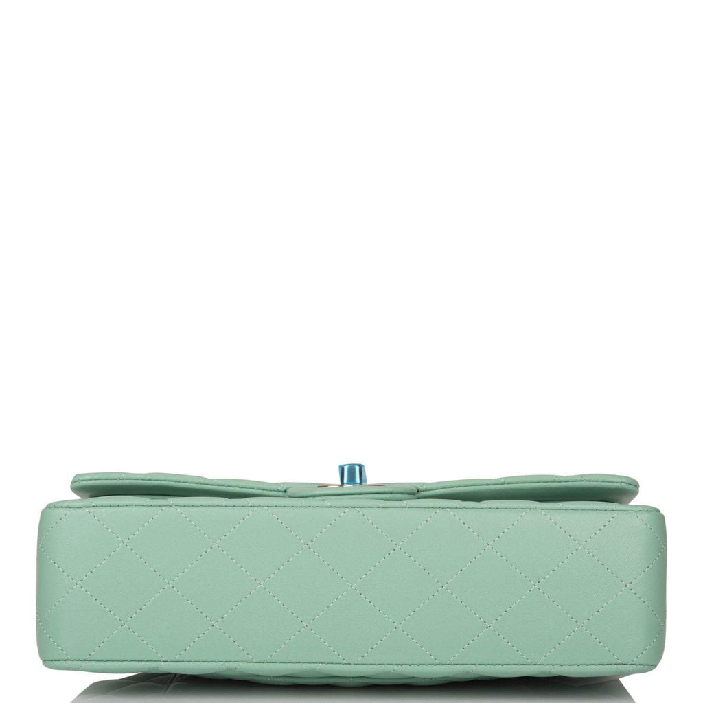 Chanel Light Green Quilted Lambskin Medium Classic Double Flap Bag Lig