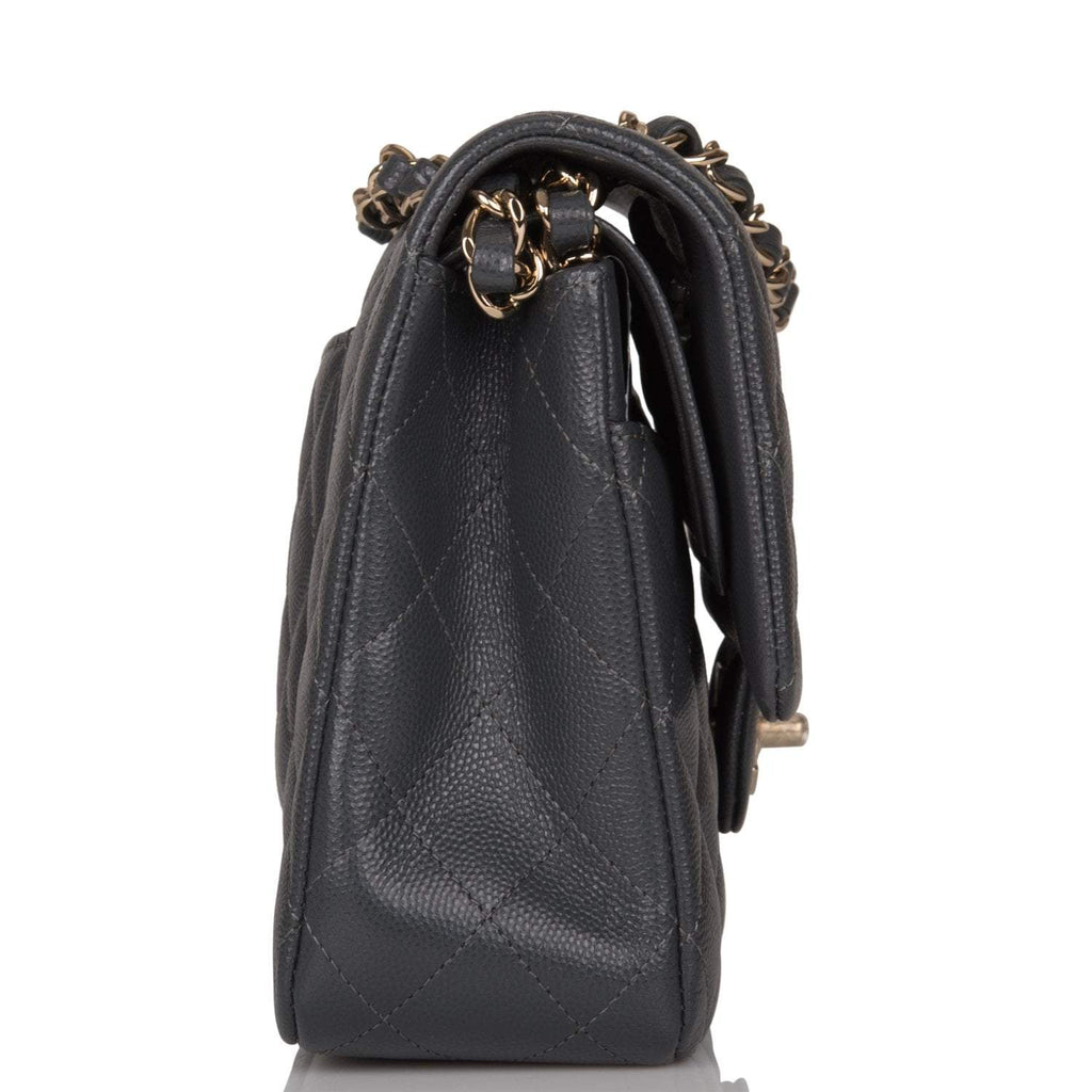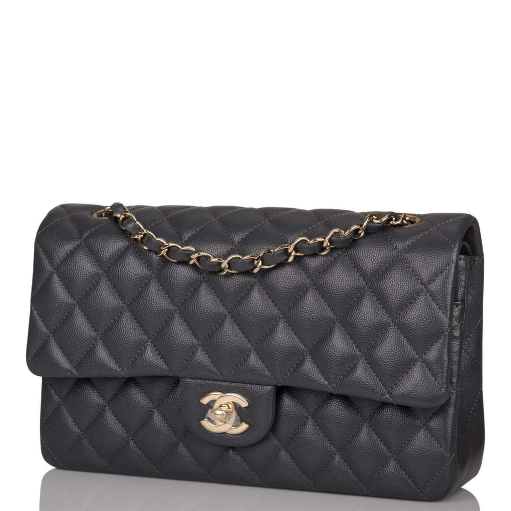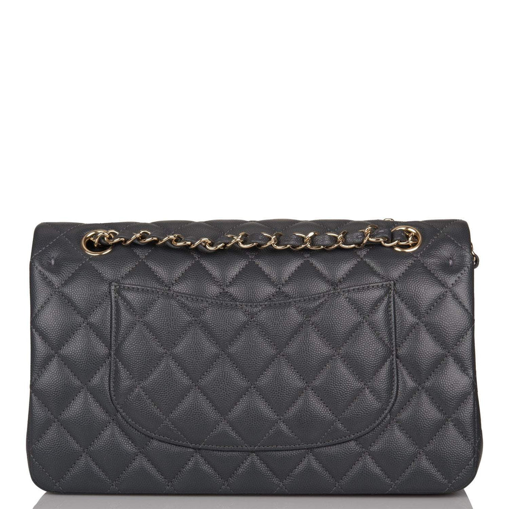 - Chanel Medium Classic Double Flap Bag Dark Grey Caviar Light Gold Hardware