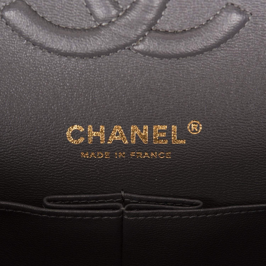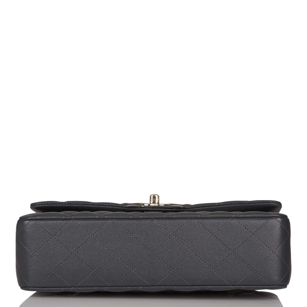 Chanel Medium Classic Double Flap Bag Dark Grey Caviar Light Gold Hard
