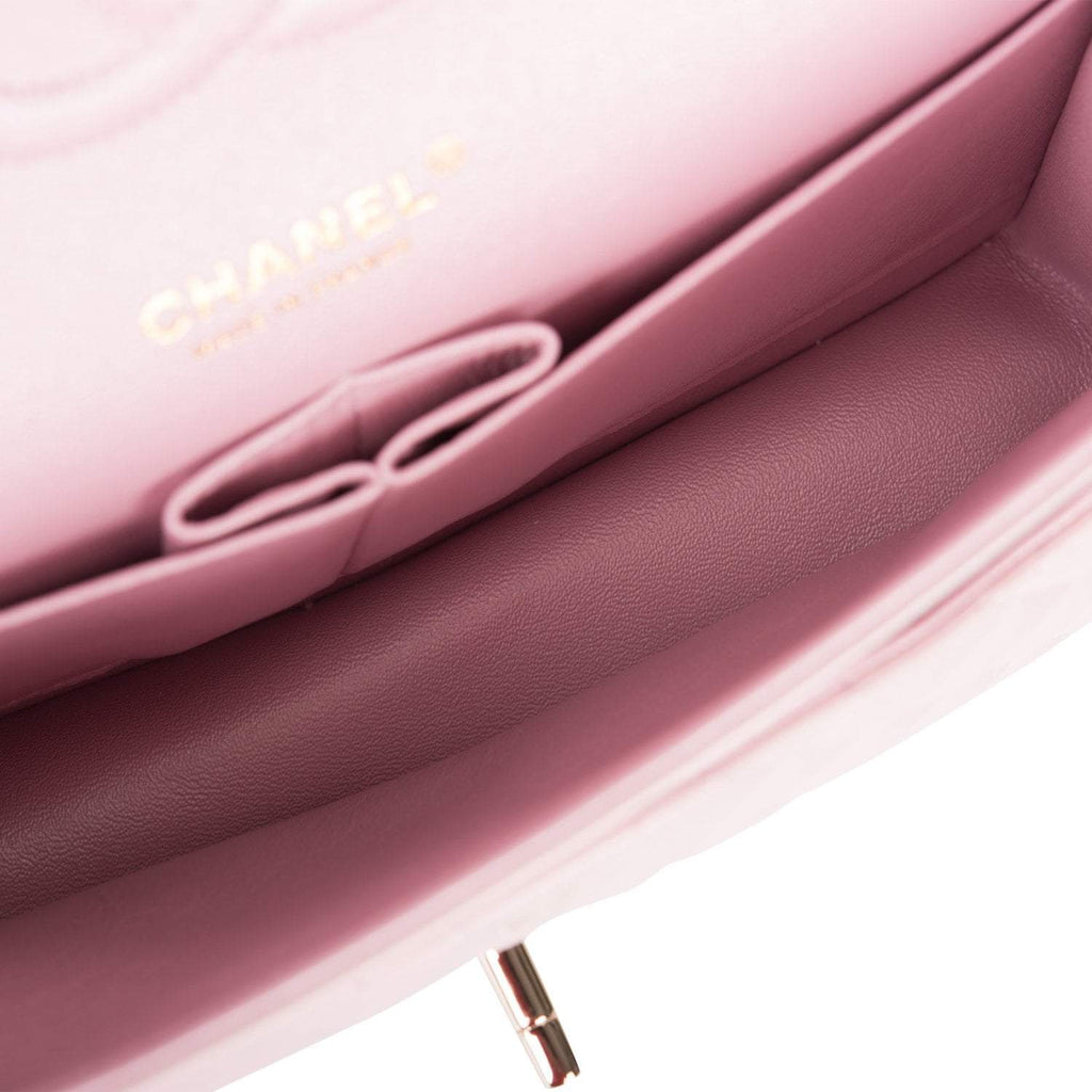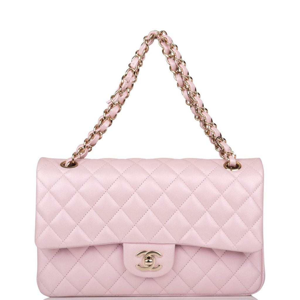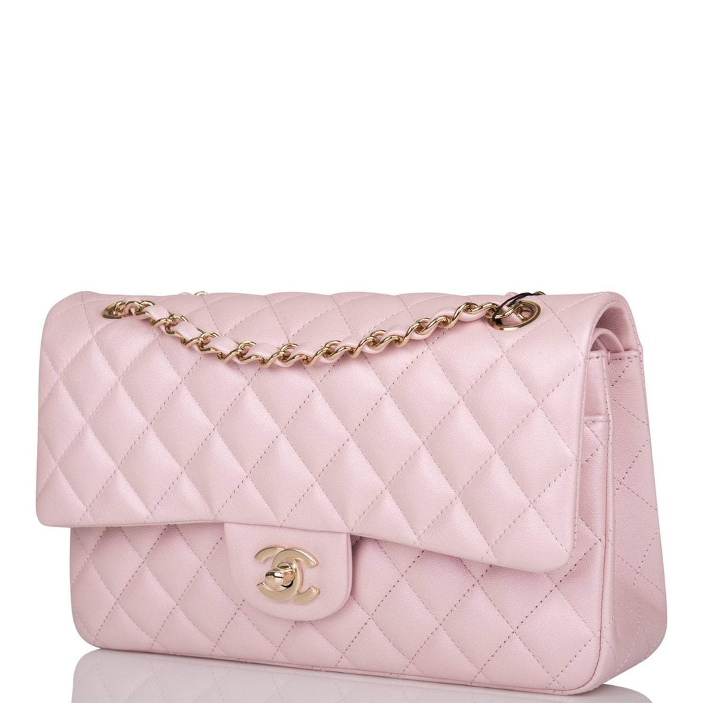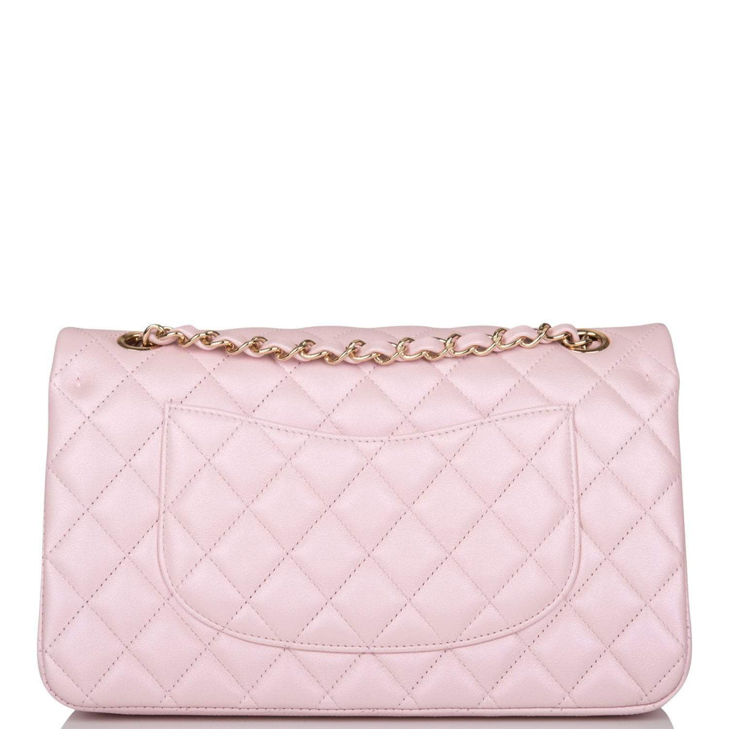 - Chanel Medium Classic Double Flap Bag Pink Iridescent Lambskin Light Gold Hardware