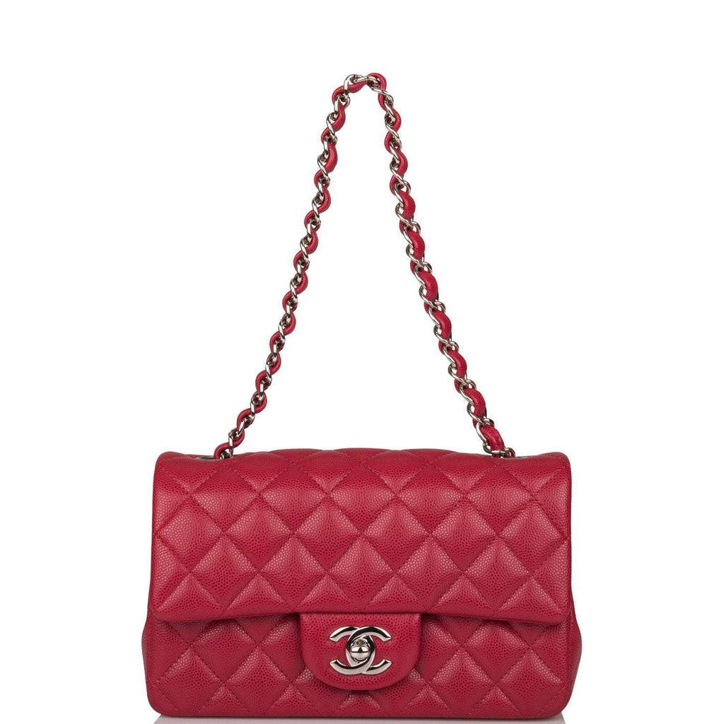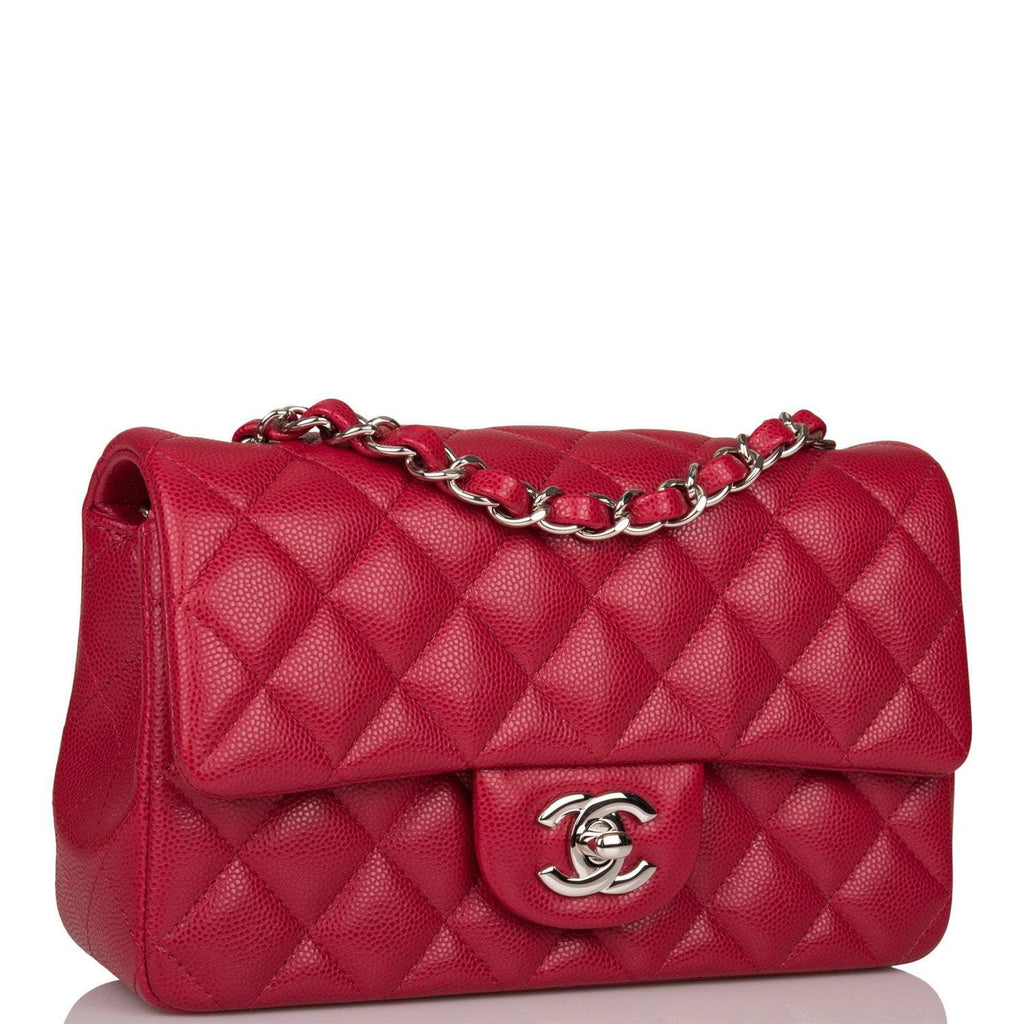 - Chanel Mini Rectangular Flap Bag Red Caviar Silver Hardware