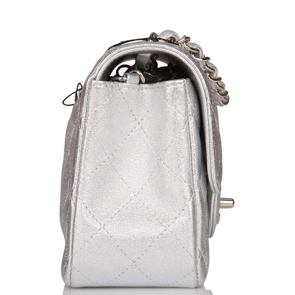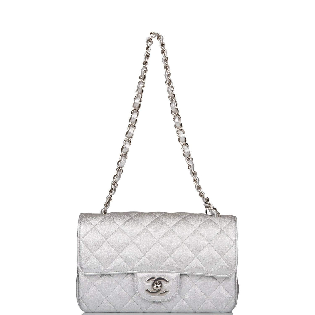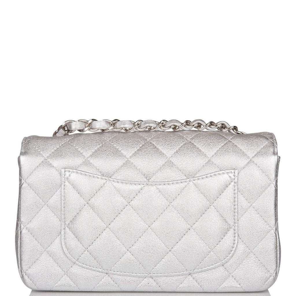 - Chanel Mini Rectangular Flap Bag Silver Metallic Lambskin Silver Hardware