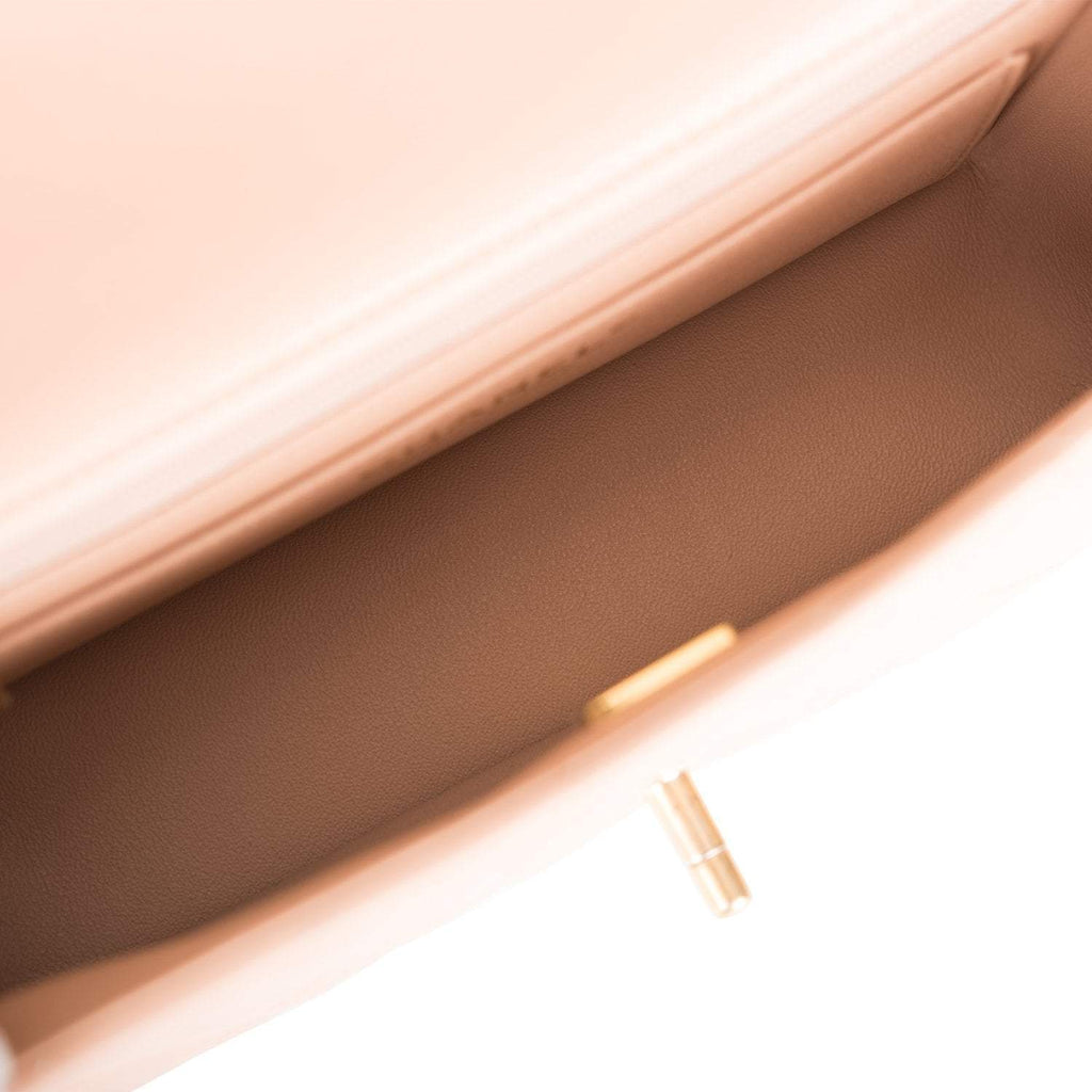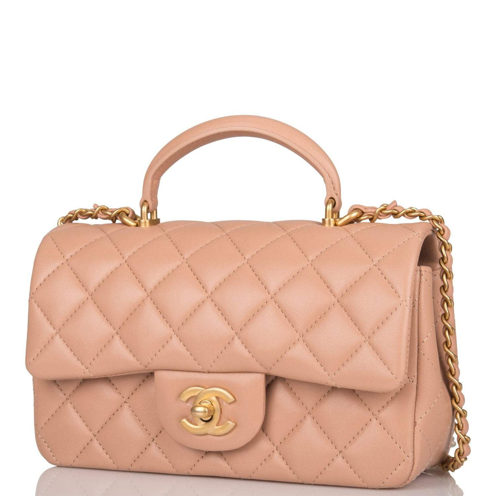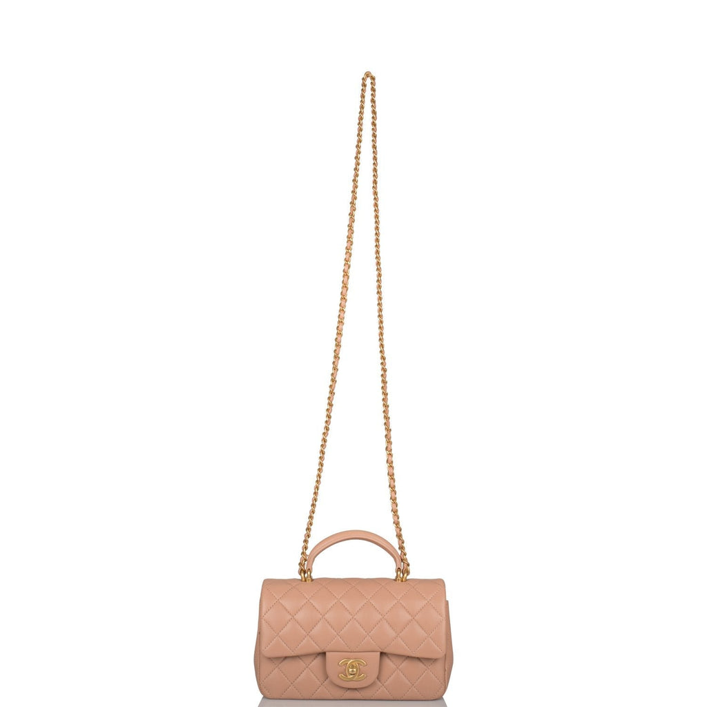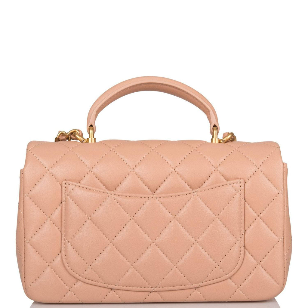 - Chanel Mini Rectangular Flap with Top Handle Beige Lambskin Antique Gold Hardware