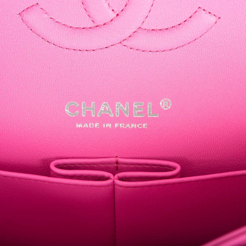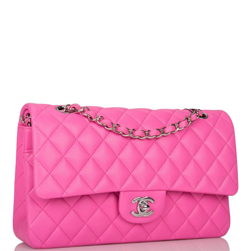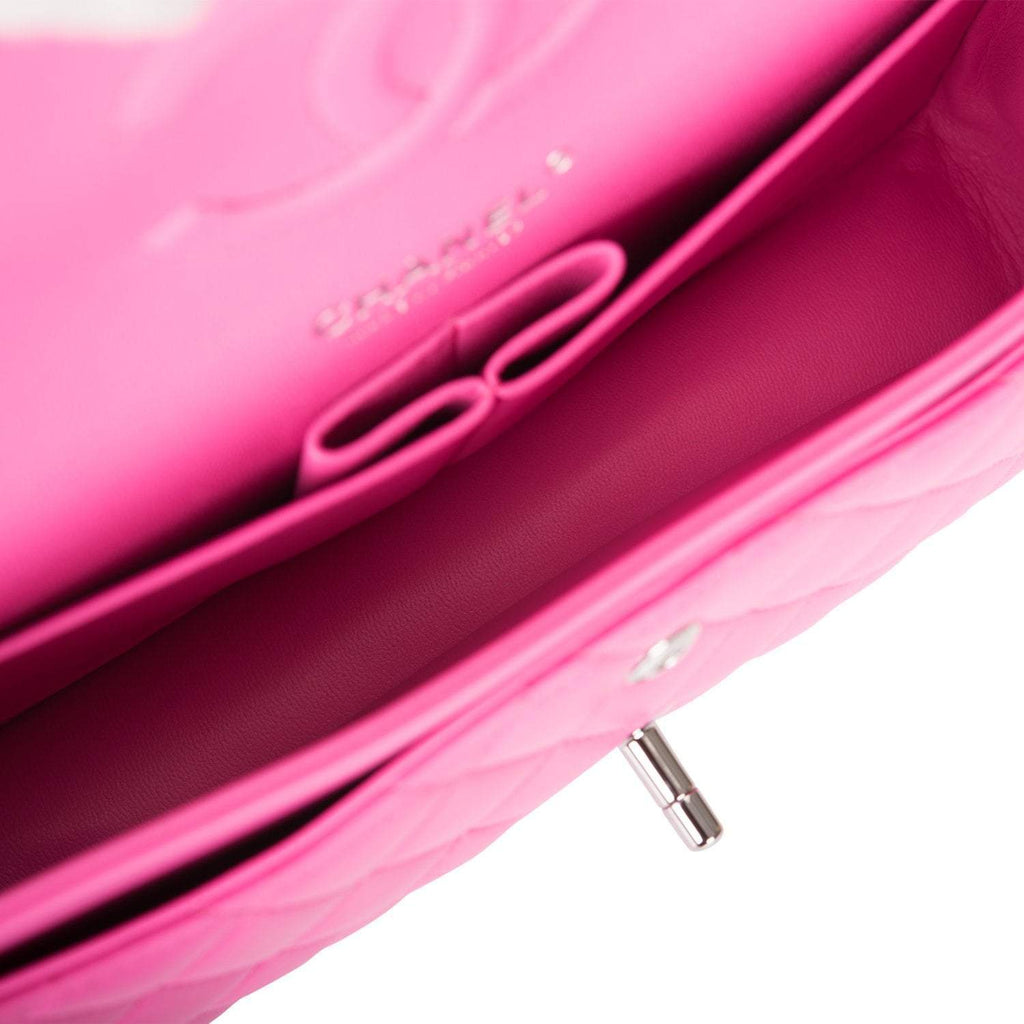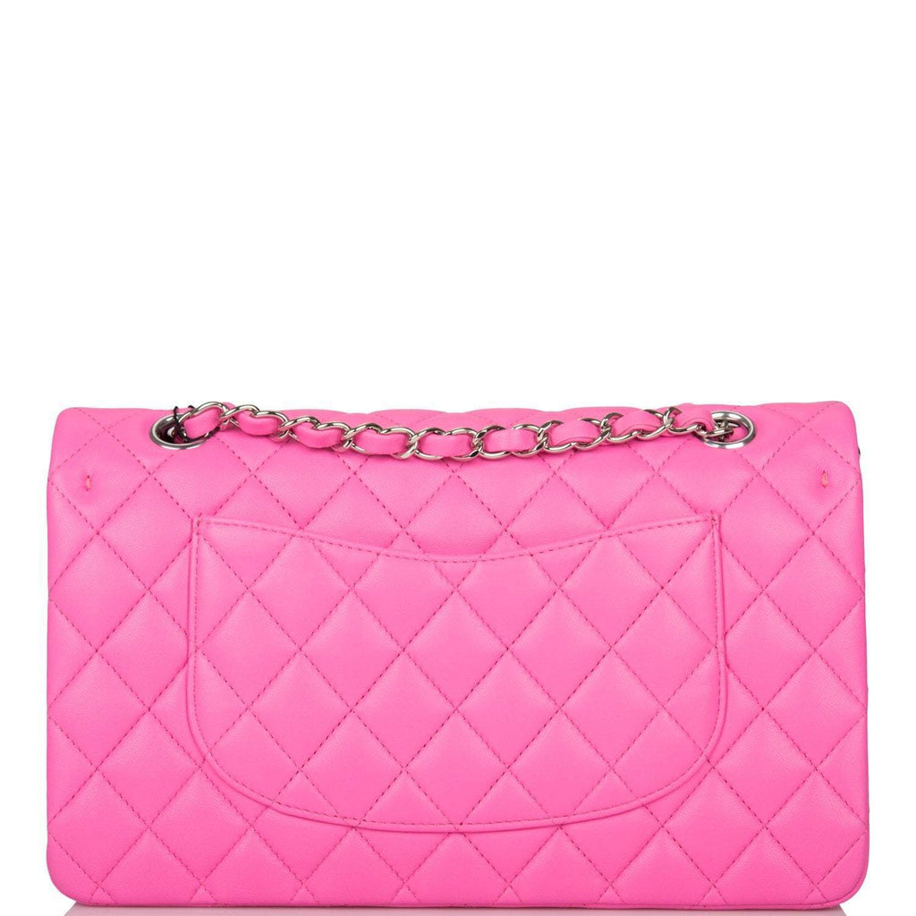- Chanel Neon Pink Quilted Lambskin Medium Classic Double Flap Bag Silver Hardware