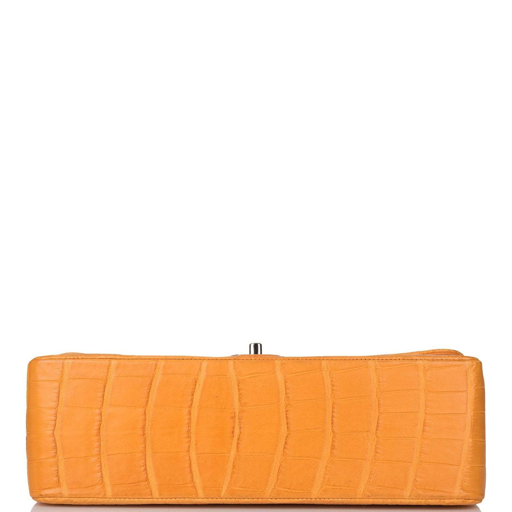 - Chanel Orange Alligator Jumbo Classic Double Flap Bag Silver Hardware