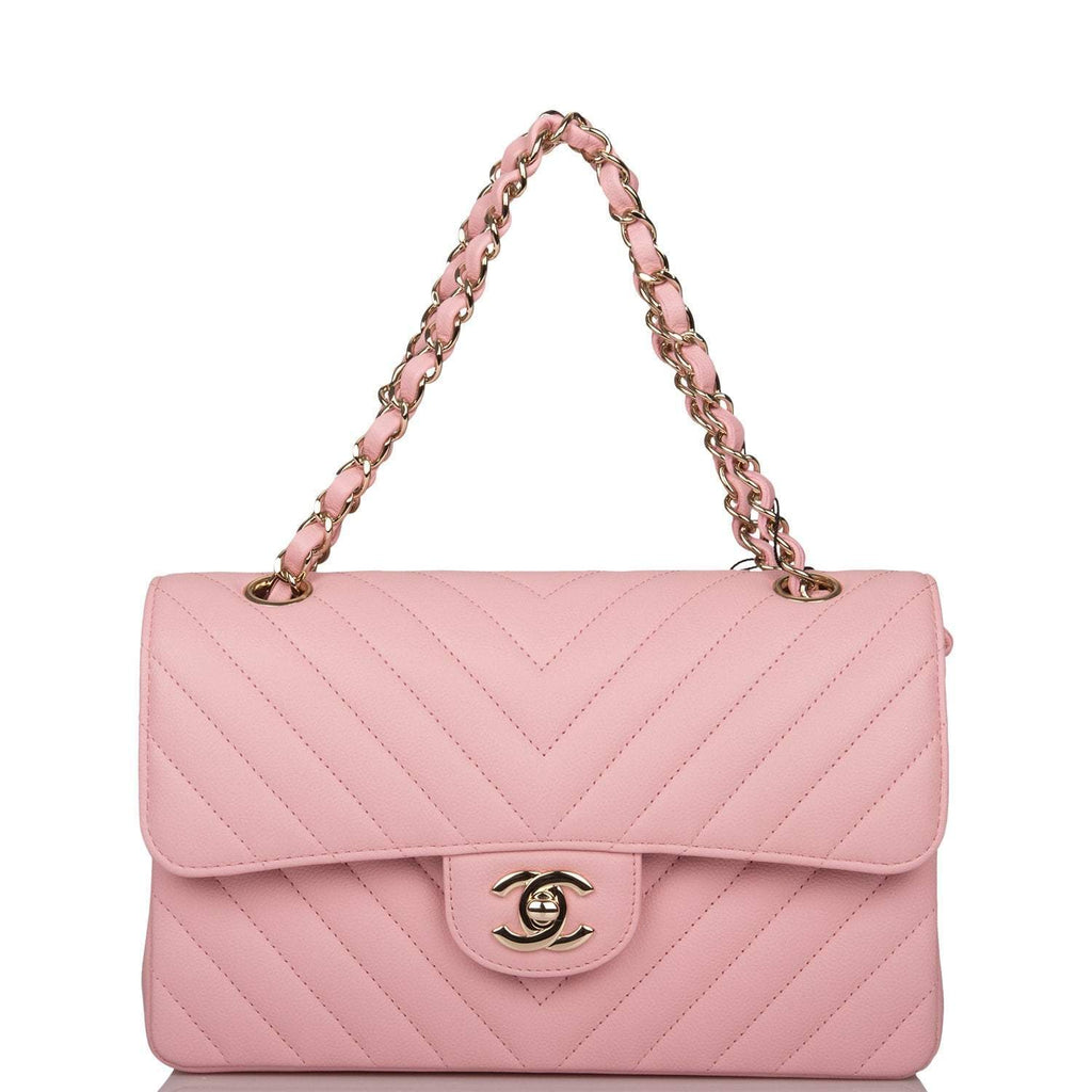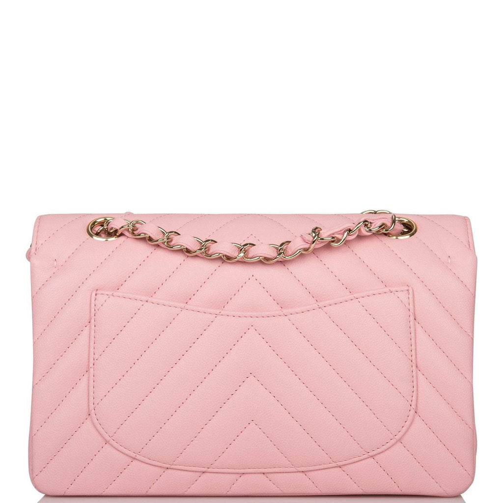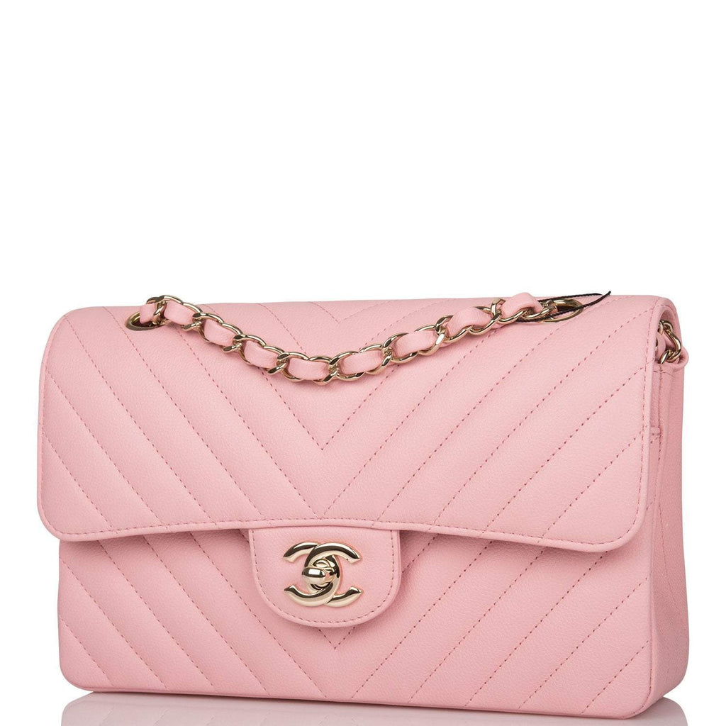 - Chanel Pink Chevron Caviar Small Classic Double Flap Bag Light Gold Hardware