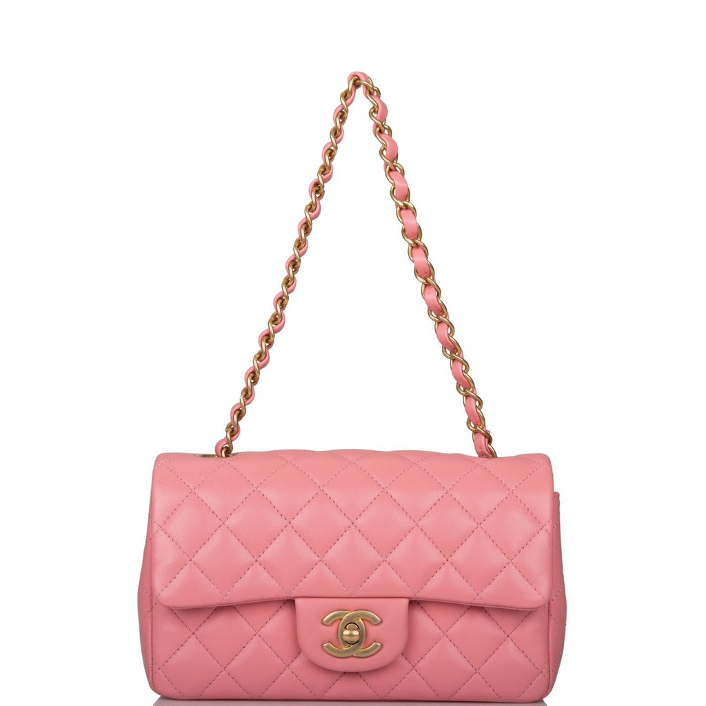 - Chanel Pink Quilted Lambskin Rectangular Mini Classic Flap Bag Antique Gold Hardware
