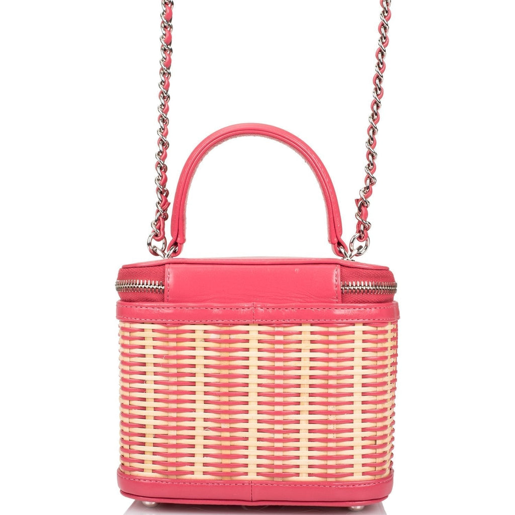 - Chanel Pink Small Rattan Vanity Case Silver Hardware