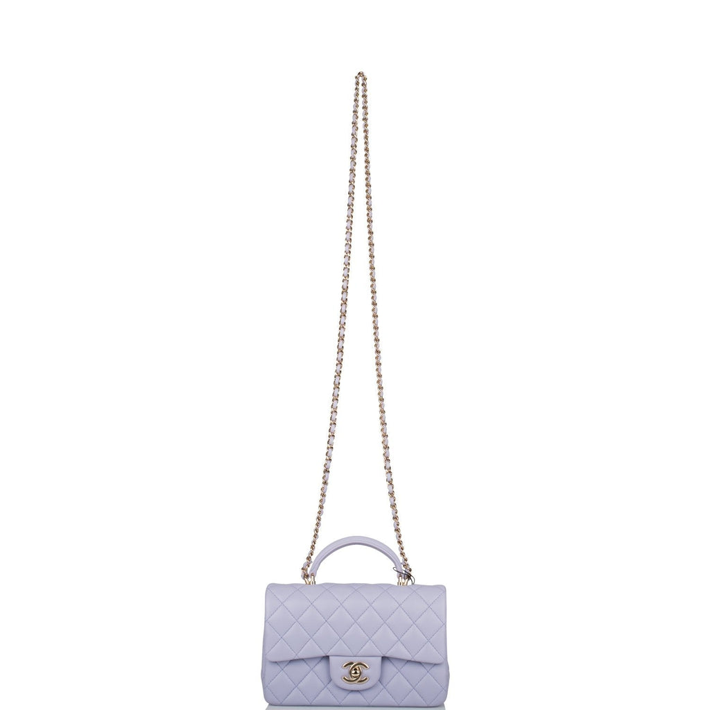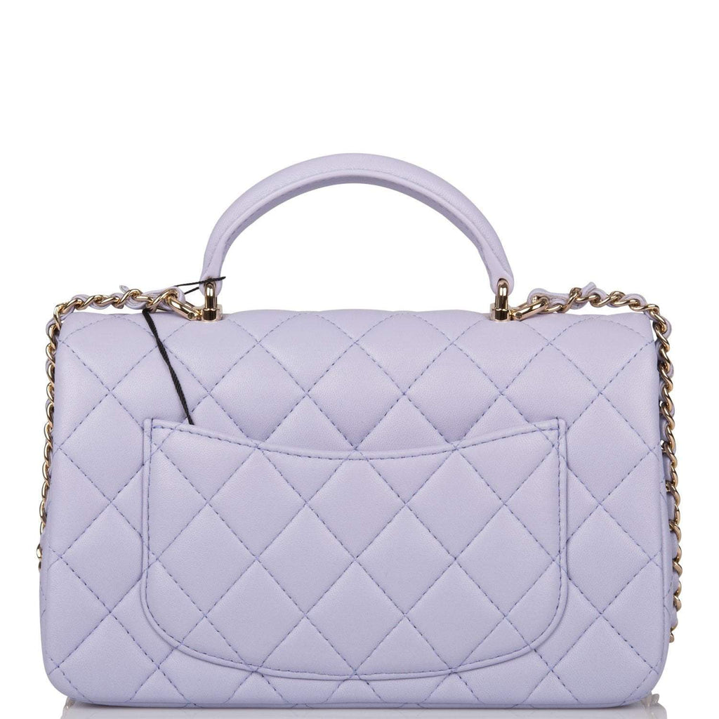 - Chanel Rectangular Mini Flap Bag with Top Handle Lavender Quilted Lambskin Light Gold Hardware