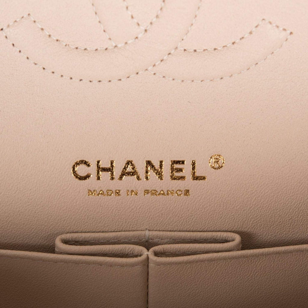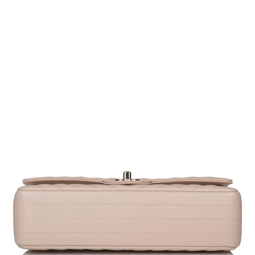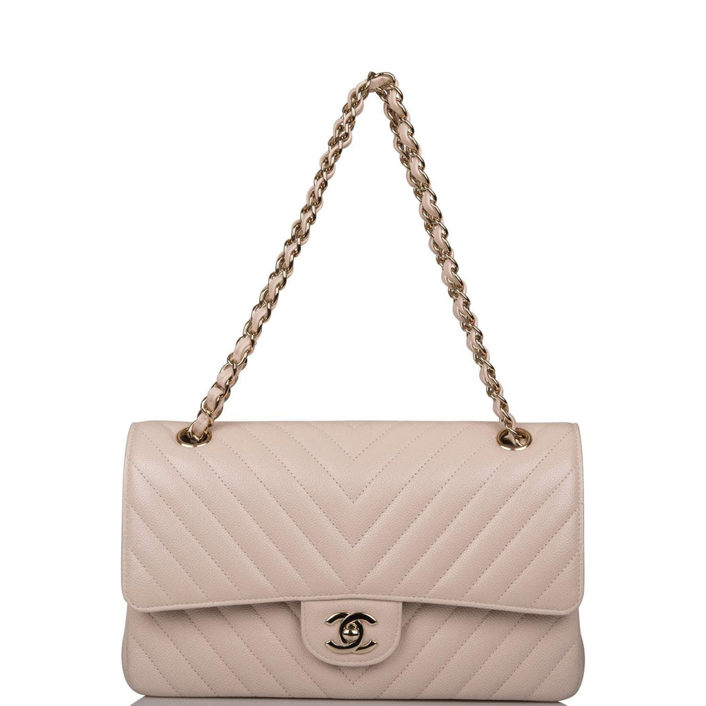 - Chanel Shiny Beige Chevron Caviar Medium Classic Double Flap Bag Light Gold Hardware