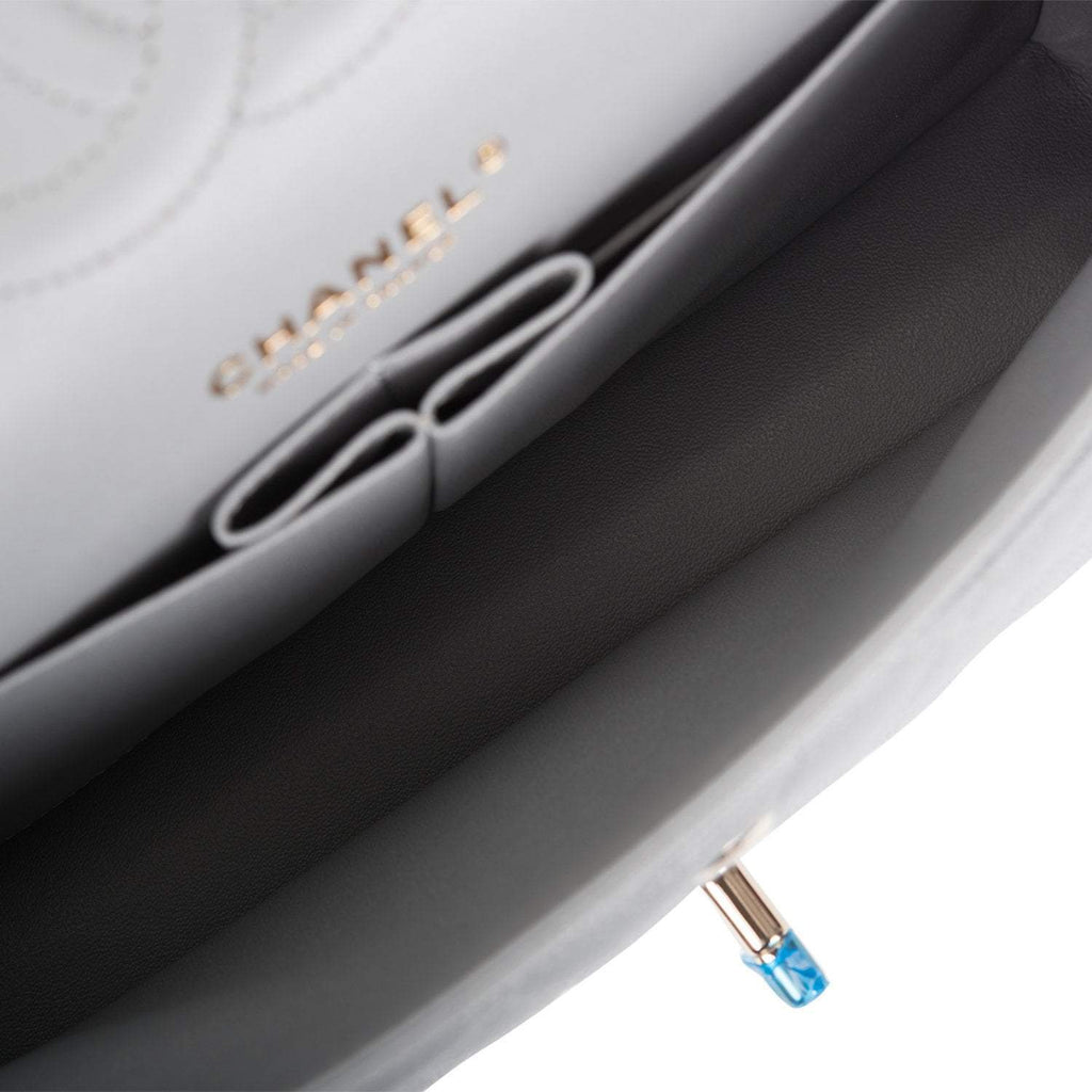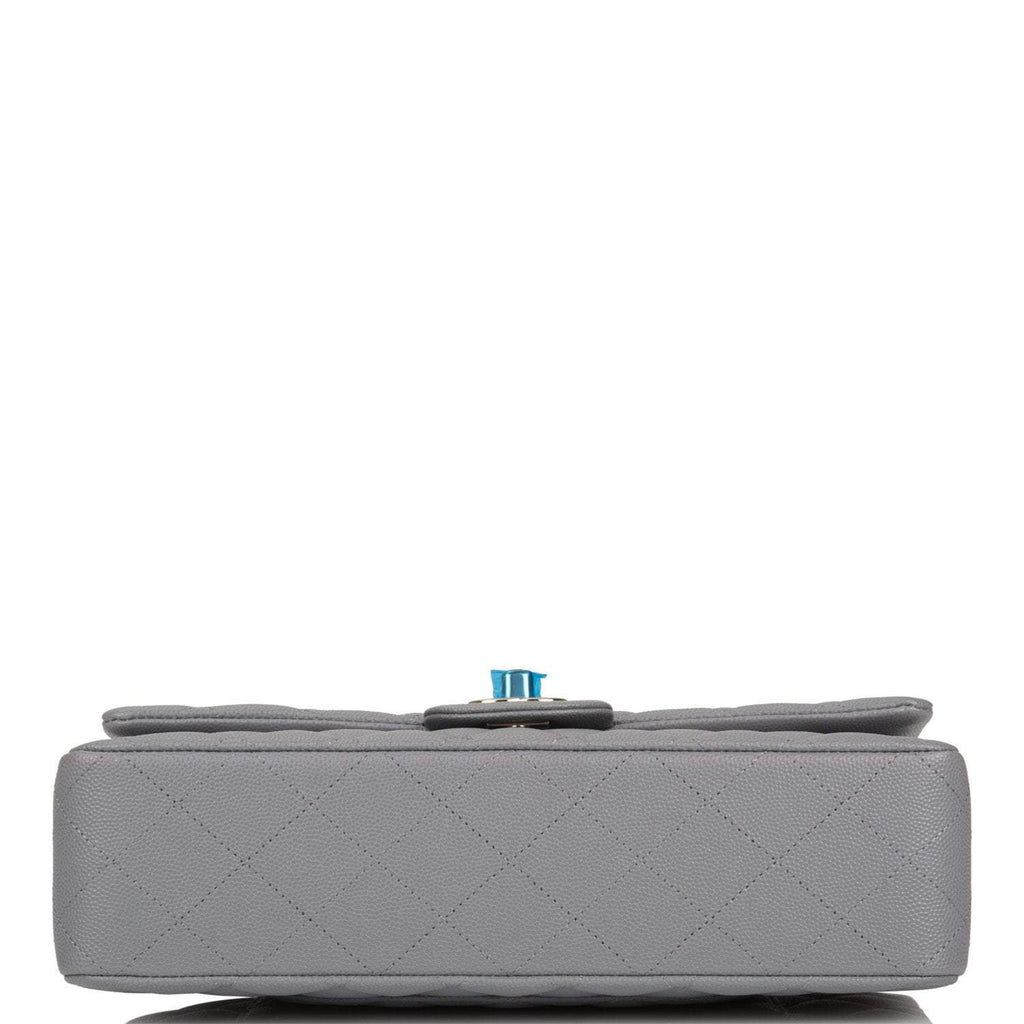 Chanel Shiny Grey Quilted Caviar Medium Classic Double Flap Bag Light