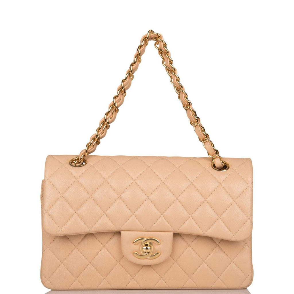 - Chanel Small Classic Double Flap Bag Beige Lambskin Gold Hardware