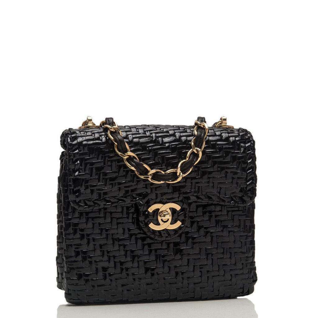 - Chanel Vintage Glazed Black Wicker Mini Flap Bag