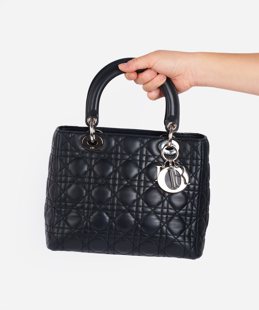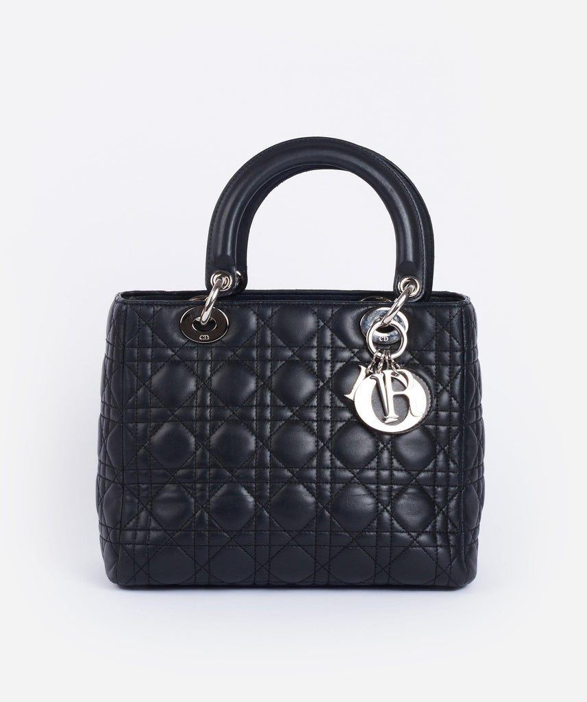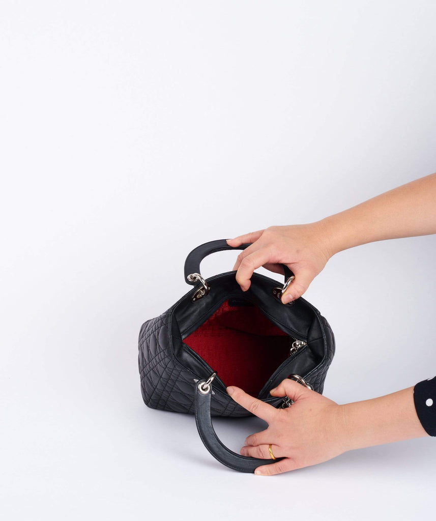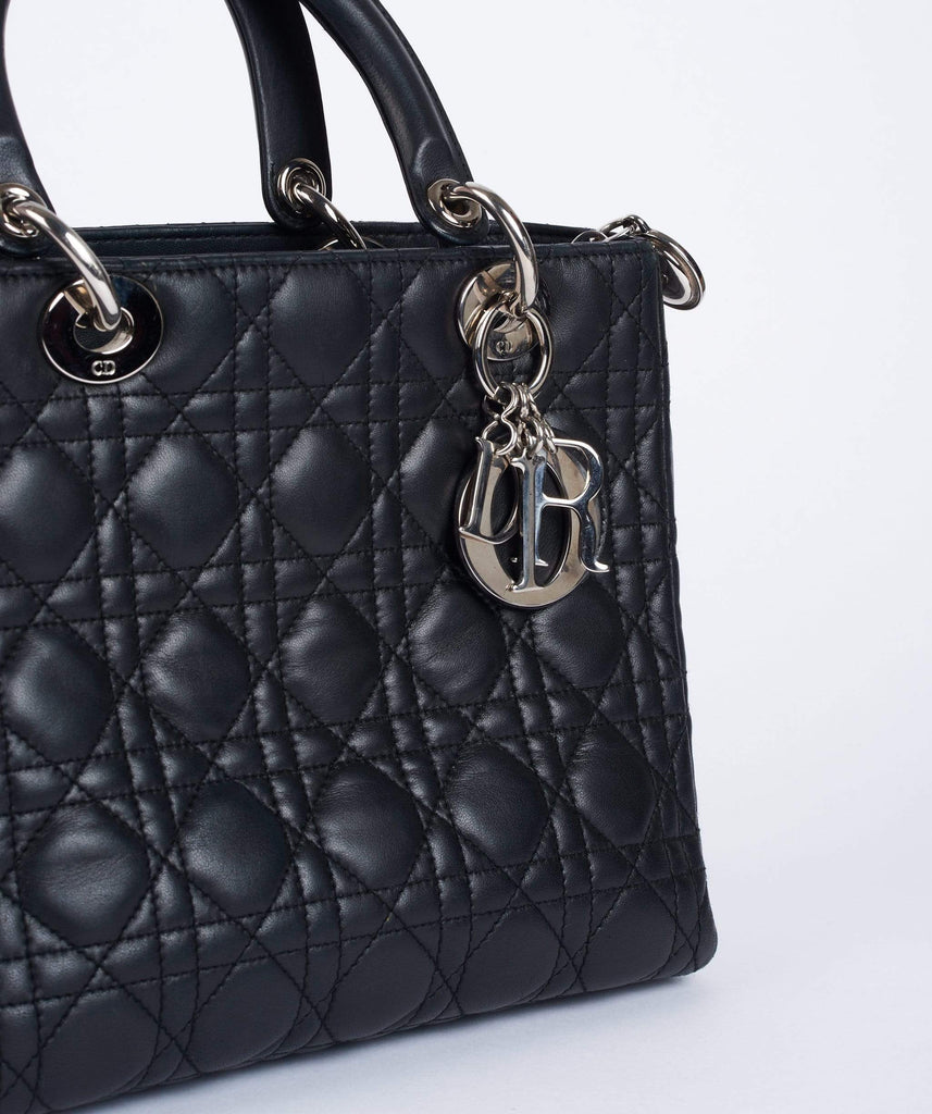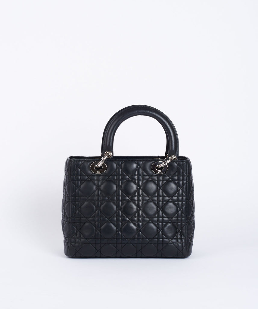 - Christian Dior Black Leather Lady Dior Medium PHW