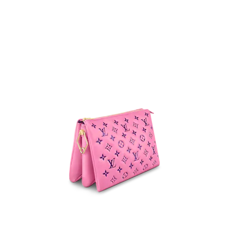 Fashioned from puffy lambskin and accessorized with a chunky gold-color chain, this Coussin PM handbag is part of the Vuittamins capsule collection. Its bright vibrant colorway is Nicolas Ghesquière’s translation of the joy and audacity...