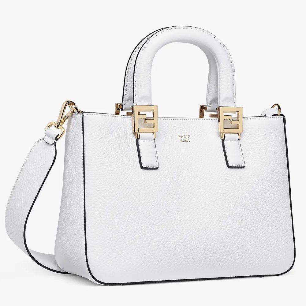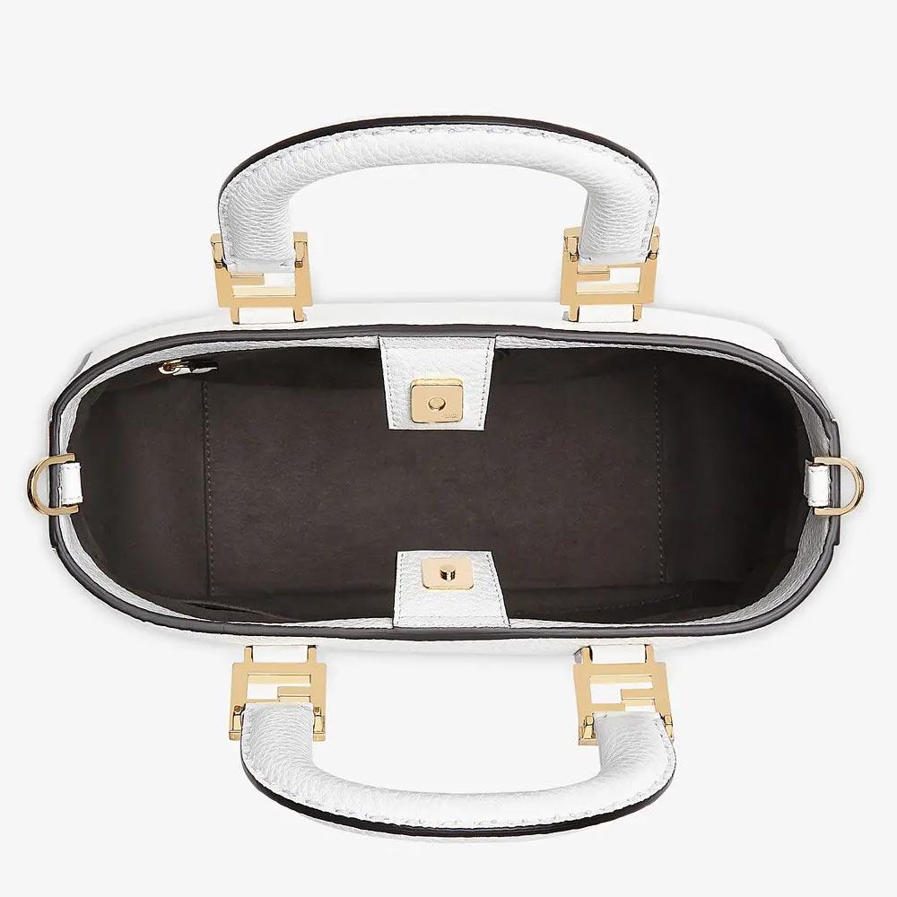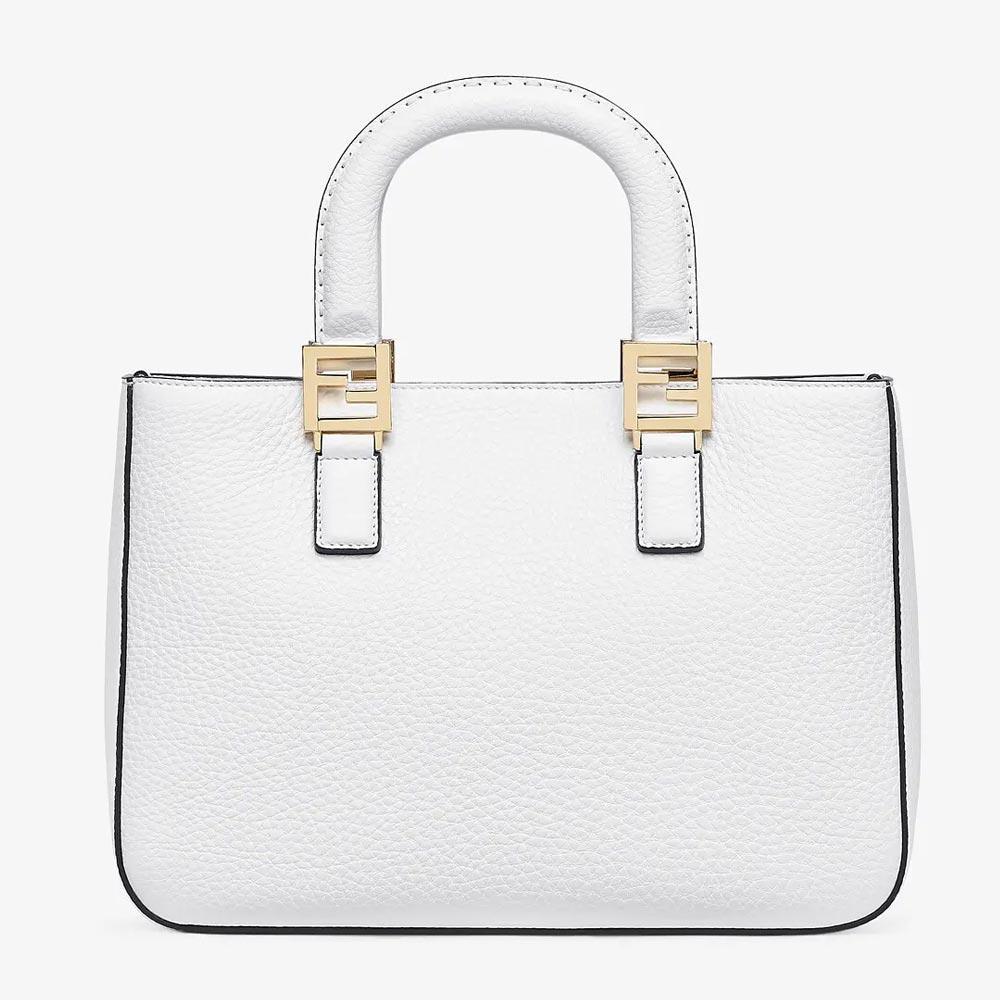 Small FF Tote bag, made of white Cuoio Romano leather and decorated with metallic FF details. Featuring a spacious lined internal compartment, an large zip pocket on one side and two open pockets on the...