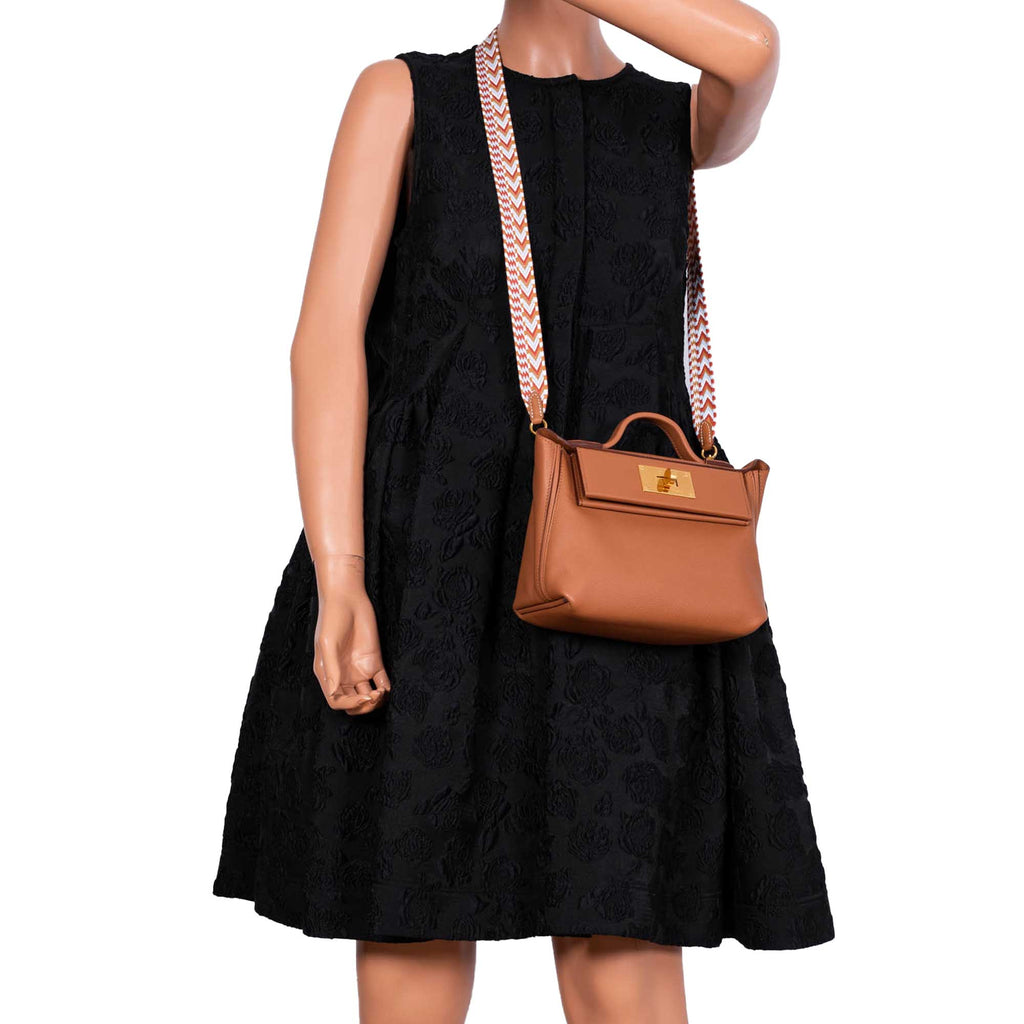 The Hermes 24/24 Bag was officially released in store around December 2018 or a bit earlier. The design is distinctive because it feels like somewhere between the Birkin and Kelly due to the structure. Hermès has introduced a new 21 size, shrinking down the bag’s proportions to just 21 cm wide and 16 cm high. It will come in a combination of Evercolor (base) and Swift (the rigid flap) calfskin and will be available in Gold, with gold hardware. Hermès has designed the bag to be a casual style meant to be carried from day to night (hence the name), and the 24/24 – 21 can be worn in several different ways (belt bag, backpack and sling bag, the choice is yours), thanks to a reworked strap just for this new size. Turn it around and you will find two ring loops at the back, allowing you to convert the long shoulder strap as you please. This makes it rather similar to the versatile Kelly Danse, except the 24/24 – 21 is much roomier in comparison, along with a top handle that gives it an extra point in terms of versatility. With a zipped pocket inside and another compartment on the outside, the 24/24 – 21 makes for a full-fledged bag that’s great for the everyday, which can only be a good thing since ‘smaller than small’ is still very much in. Complementary to Evergrain calfskin, this leather has a similar suppleness and comes in a wide palette of "forever" colors! First appeared in the collections in 2012.