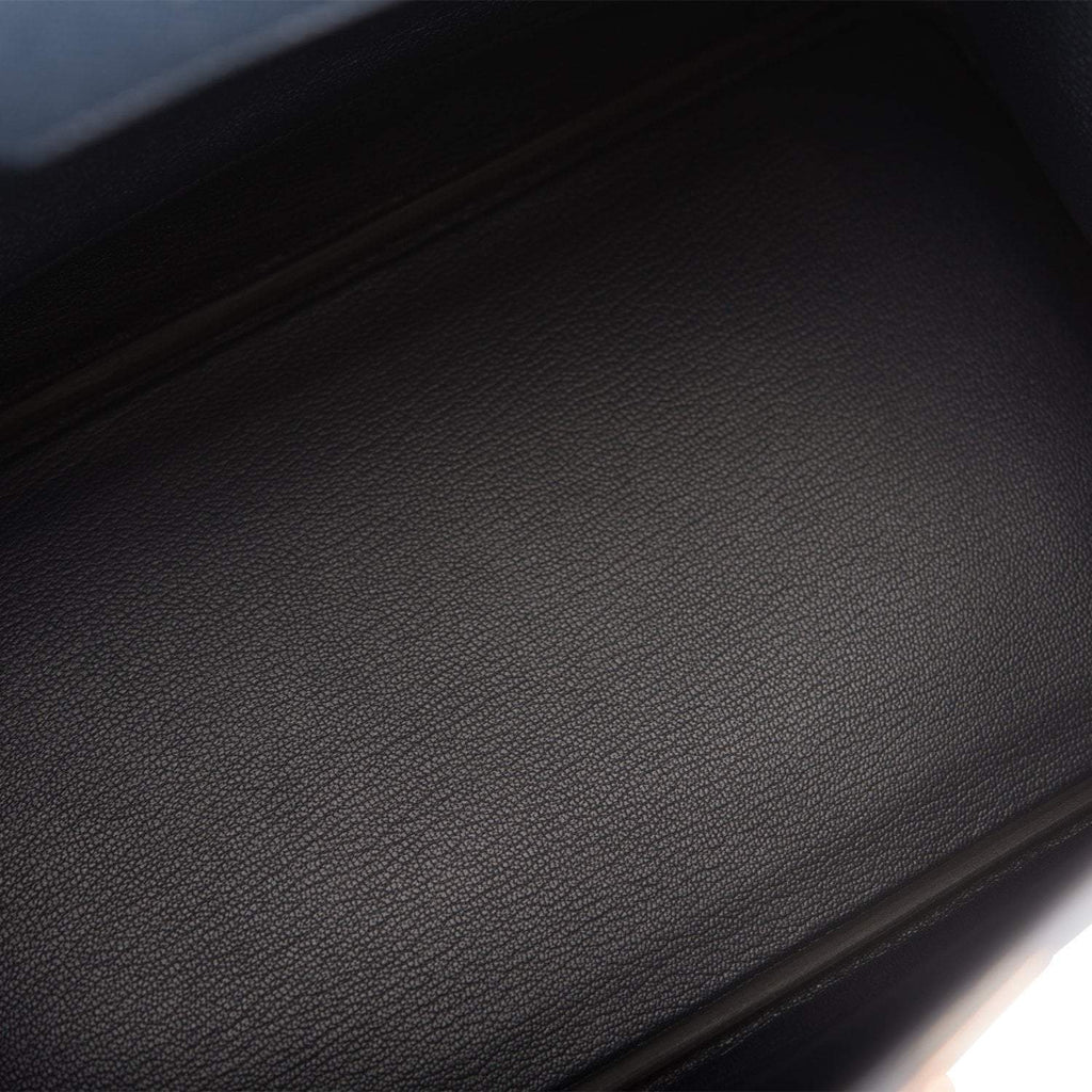 This Birkin is in Bleu Indigo epsom leather with rose gold hardware and has tonal stitching, front flap, two straps with center toggle closure, clochette with lock and two keys, and double rolled handles. The interior...