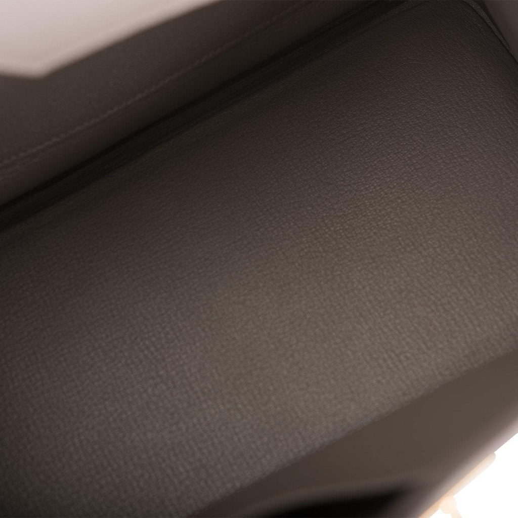 The interior is lined with Etain chevre and has one zip pocket with an Hermes engraved zipper pull and an open pocket on the opposite side.