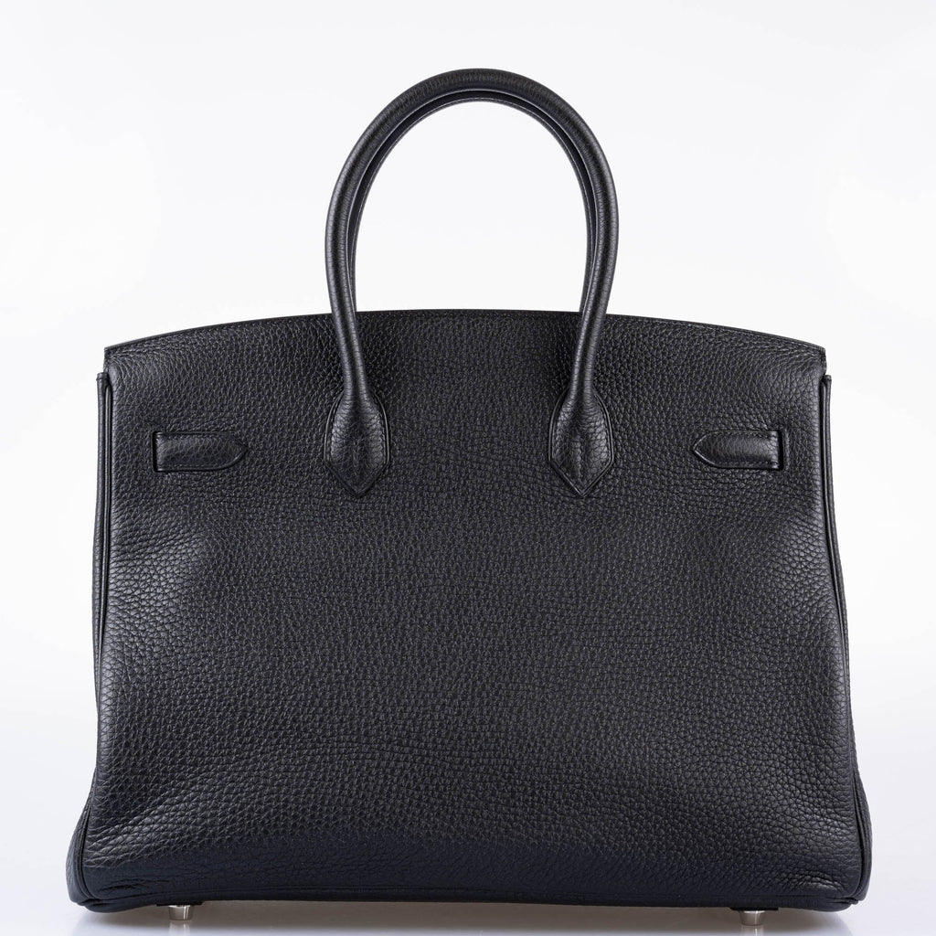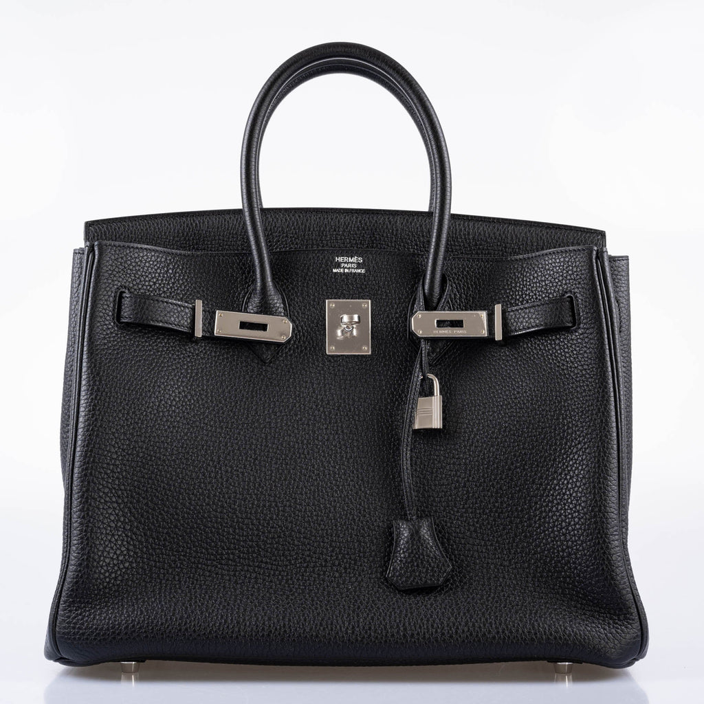 There is nothing as classic as a black Birkin with palladium hardware, and this is just about the best example one can find on the iconic design. Done in perfect black Togo leather, this 35cm Birkin, topped with gleaming palladium hardware, is the epitome of style, class, and timeless elegance, not to mention the height of luxury. Kept in Store Fresh condition by a seasoned collector.