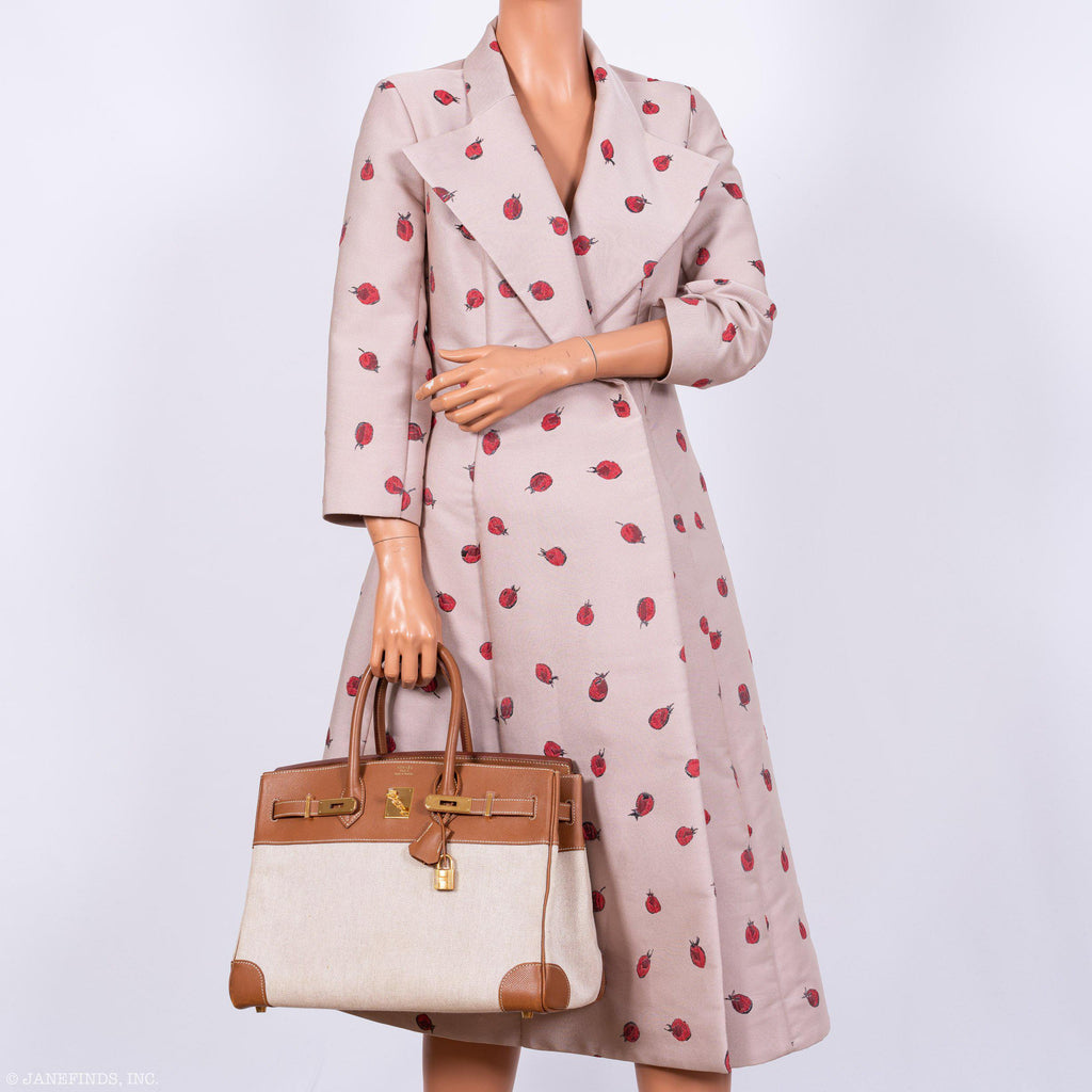 - Hermes Birkin 35 Toile & Gold Epsom Gold Hardware