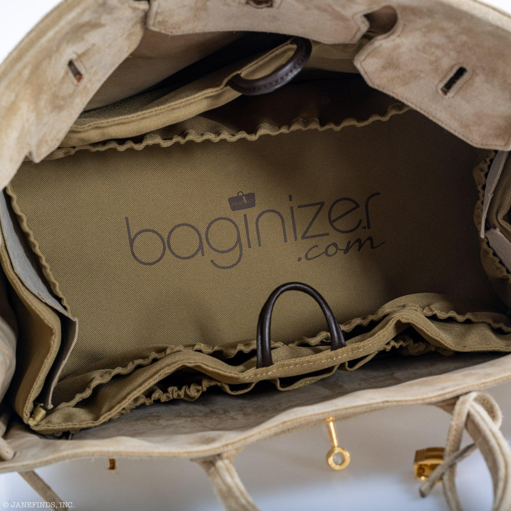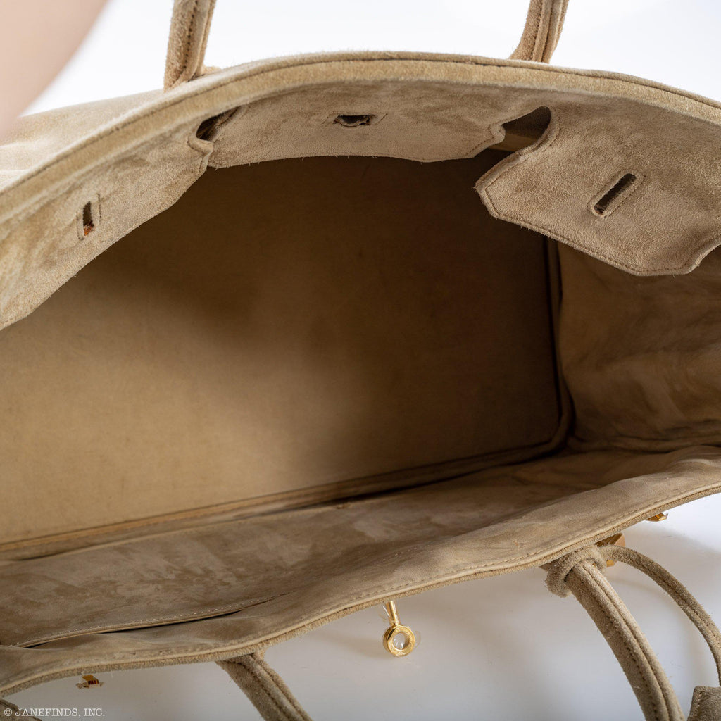 - Hermes Birkin 40 Beige Veau Doblis Suede with Gold Hardware - 1986, P Circle
