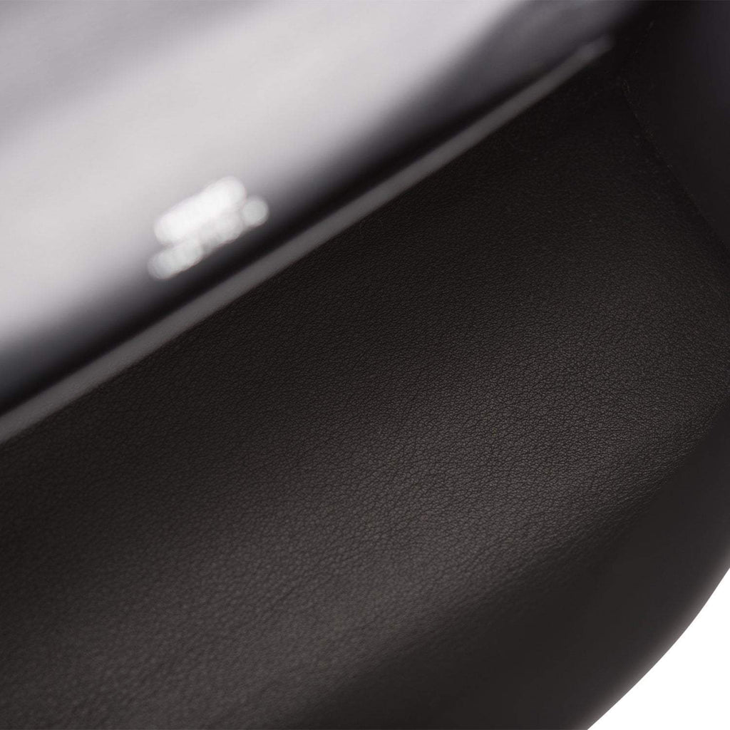 This Mini Kelly Pochette is in Black swift leather with palladium hardware and has tonal stitching, front flap, two straps with center toggle closure and a top flat handle. The interior is lined with black...