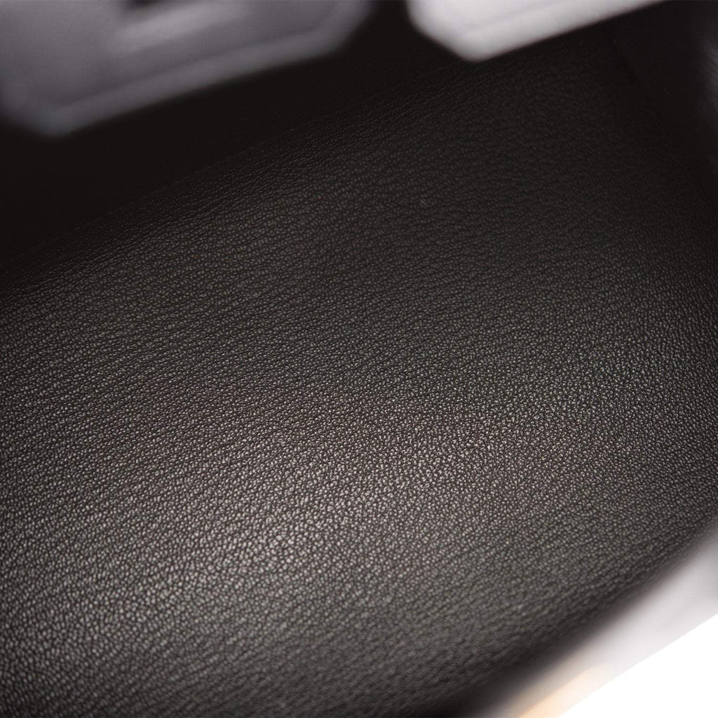 The interior is lined with black chevre and has one zip pocket with an Hermes engraved zipper pull and an open pocket on the opposite side.