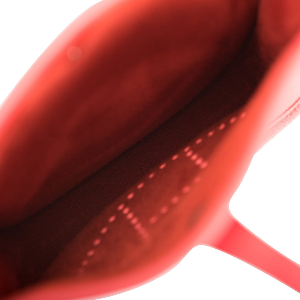 This Evelyne TPM is in Bougainvillea clemence leather with palladium hardware and features tonal stitching stitching, pull tab top closure and a Bougainvillea removable canvas and leather shoulder/crossbody strap.
