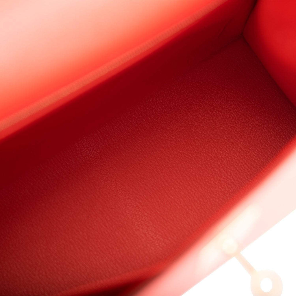 The interior is lined in Capucine chevre and has one zip pocket with Hermes engraved pull and two open pockets on the opposite side.