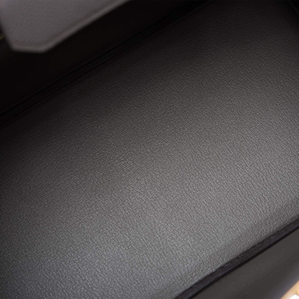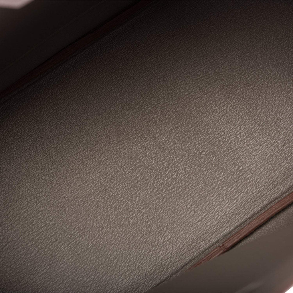 The interior is lined with Etain chevre and has one zip pocket with an Hermes engraved zipper pull and an open pocket on the opposite side.