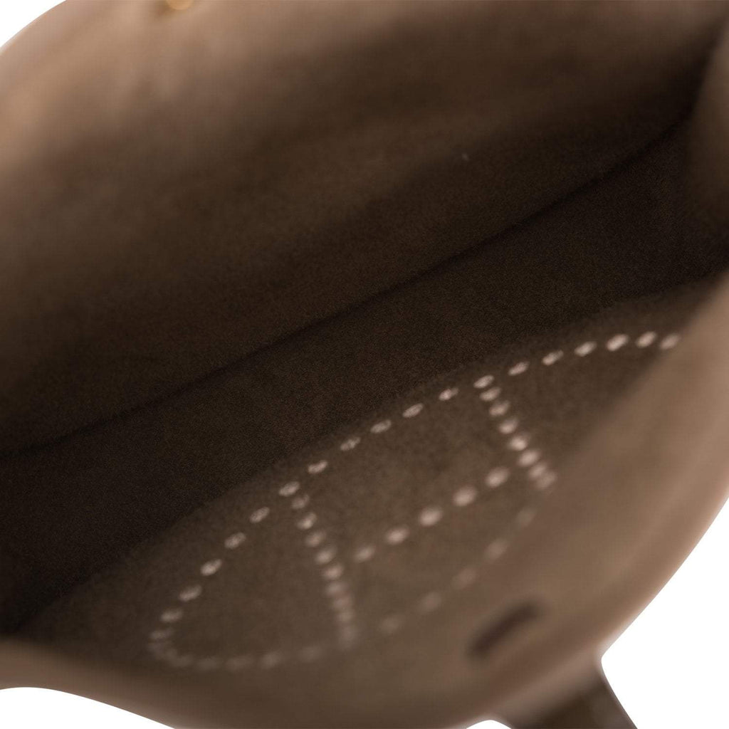 This Evelyne is in Etoupe clemence leather with palladium hardware and has contrast stitching, pull tab top closure and an Etoupe removable canvas and leather shoulder/crossbody strap. The interior is lined with natural leather. Condition: Pristine;...