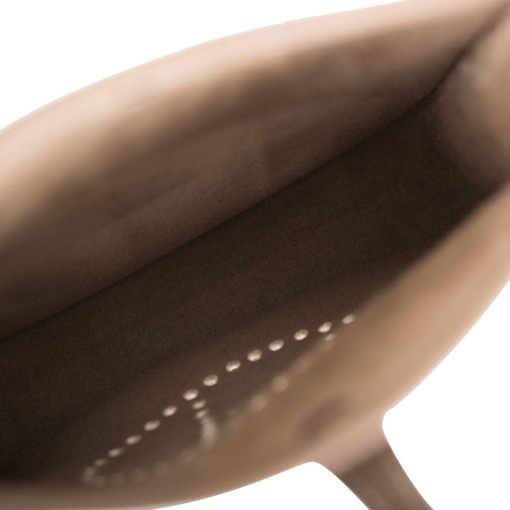 This Evelyne is in Etoupe clemence leather with palladium hardware and has contrast stitching, pull tab top closure and a Bleu Indigo removable canvas and leather shoulder/crossbody strap. The interior is lined with natural leather....