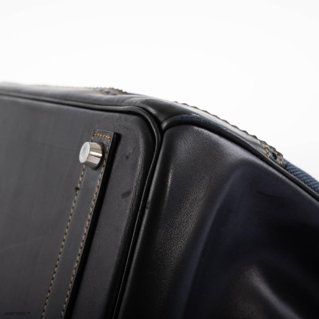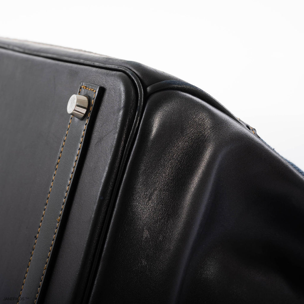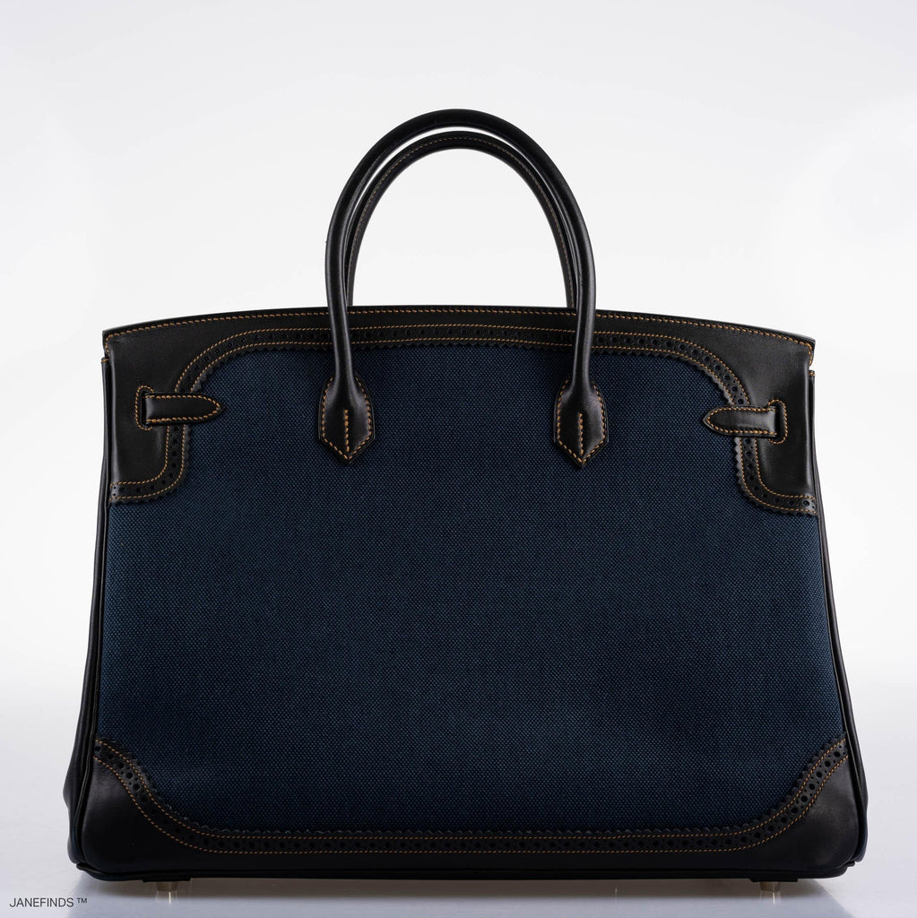 - Hermes Ghillies Birkin 40 Indigo Denim & Black Evercalf with Brushed Palladium Hardware - 2013, Q Square
