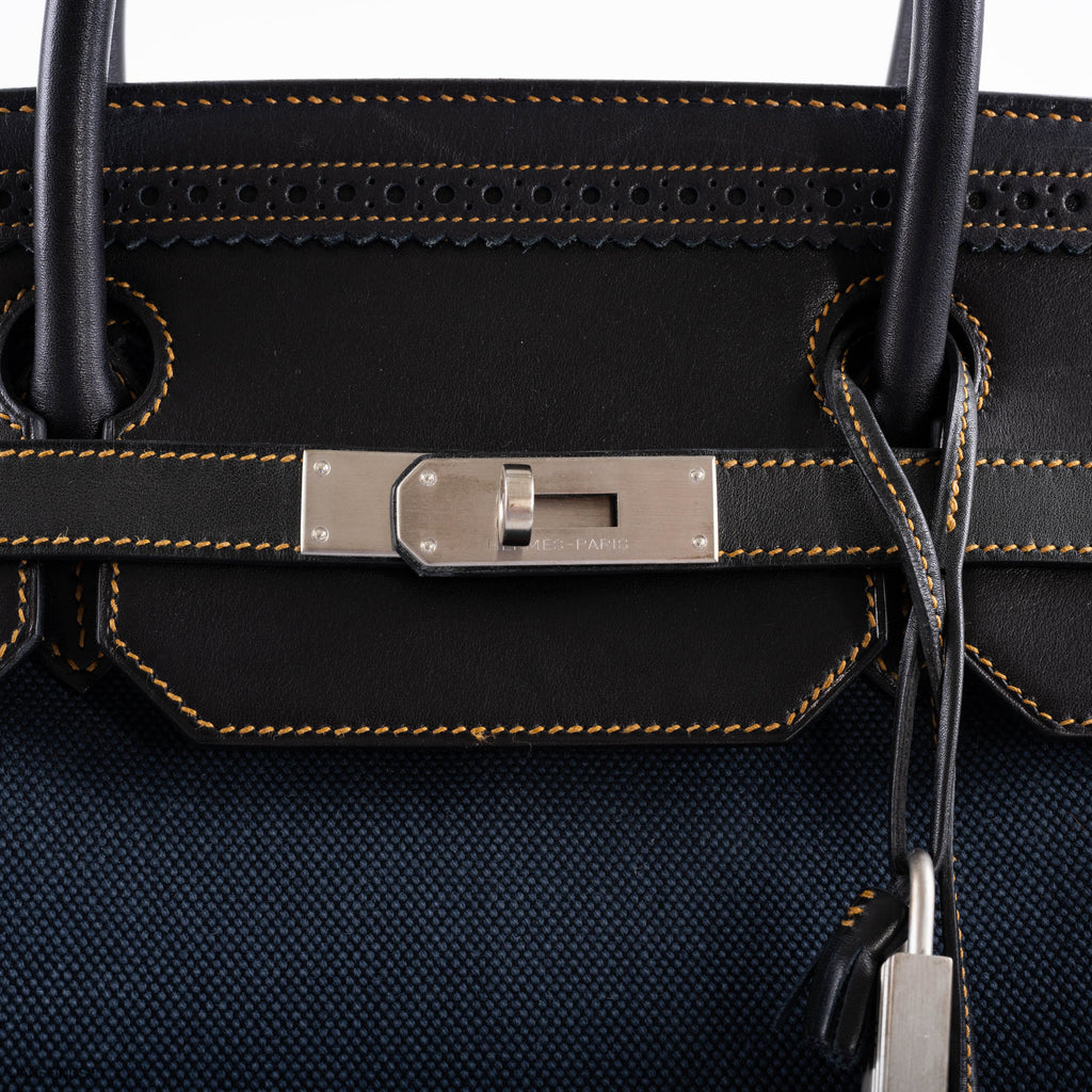 Hermes Ghillies Birkin 40 Indigo Denim & Black Evercalf with Brushed P
