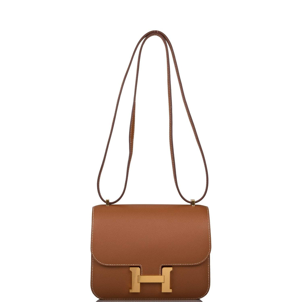 This Constance is in Gold evercolor leather with gold hardware and has contrast stitching, a metal "H" snap lock closure and adjustable shoulder strap. The interior is lined with gold lambskin and has an open pocket on the front wall,...