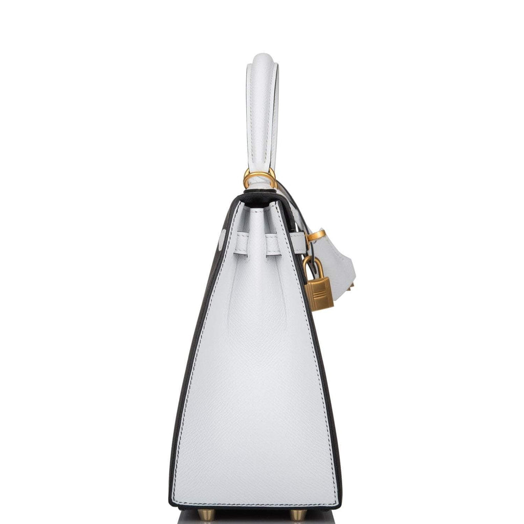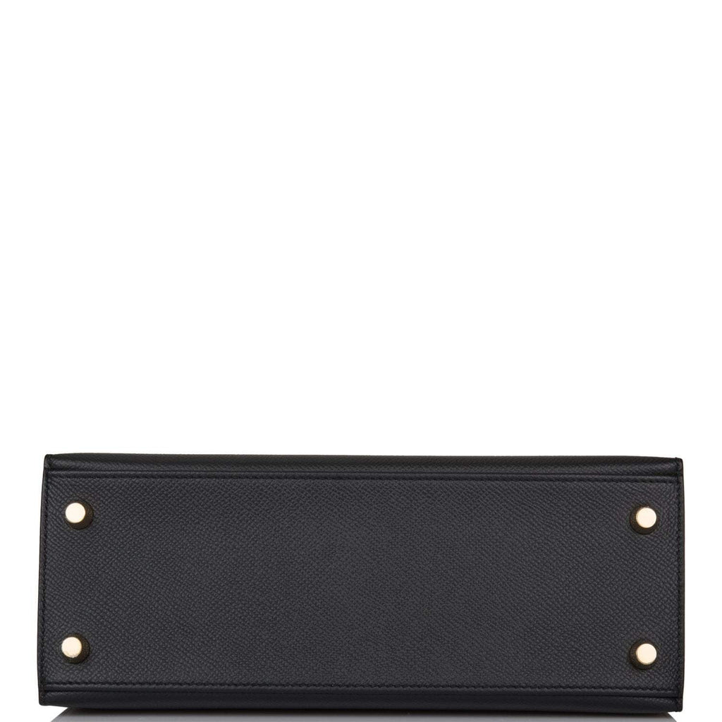 - Hermes Kelly 28cm Bi-Color Black and Craie Epsom Sellier Brushed Gold Hardware