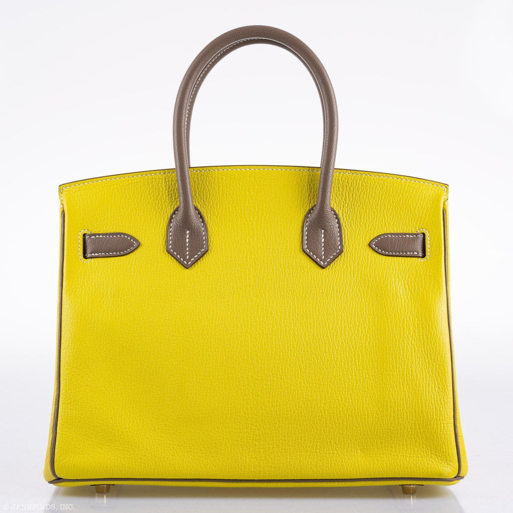 - Hermes HSS Birkin 30 Lime & Etoupe Chevre with Gold Hardware - 2013, Q Square
