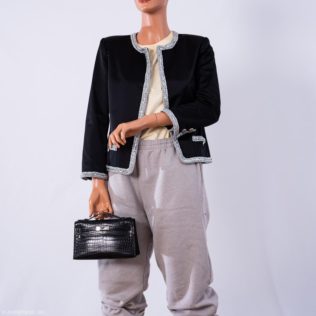 Hermes JPG Kelly Pochette Black Matte Niloticus Crocodile Palladium Ha