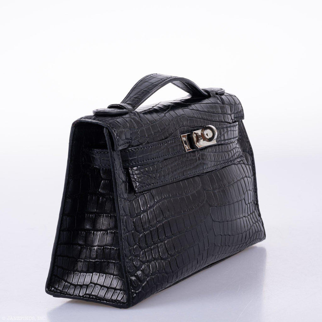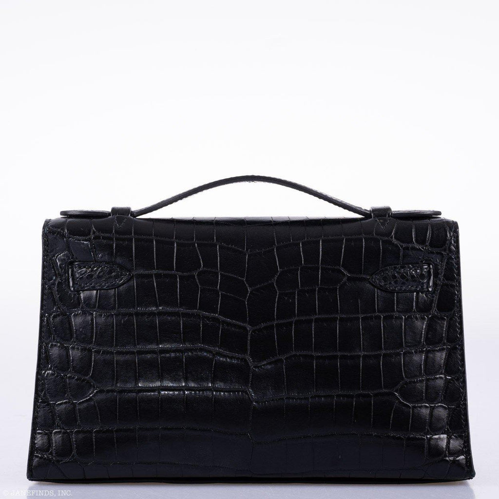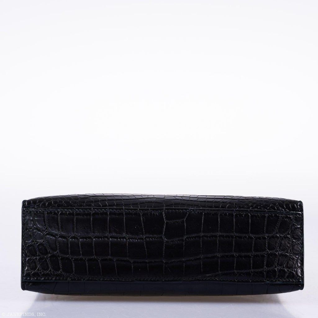 - Hermes JPG Kelly Pochette Black Matte Niloticus Crocodile Palladium Hardware - Square L